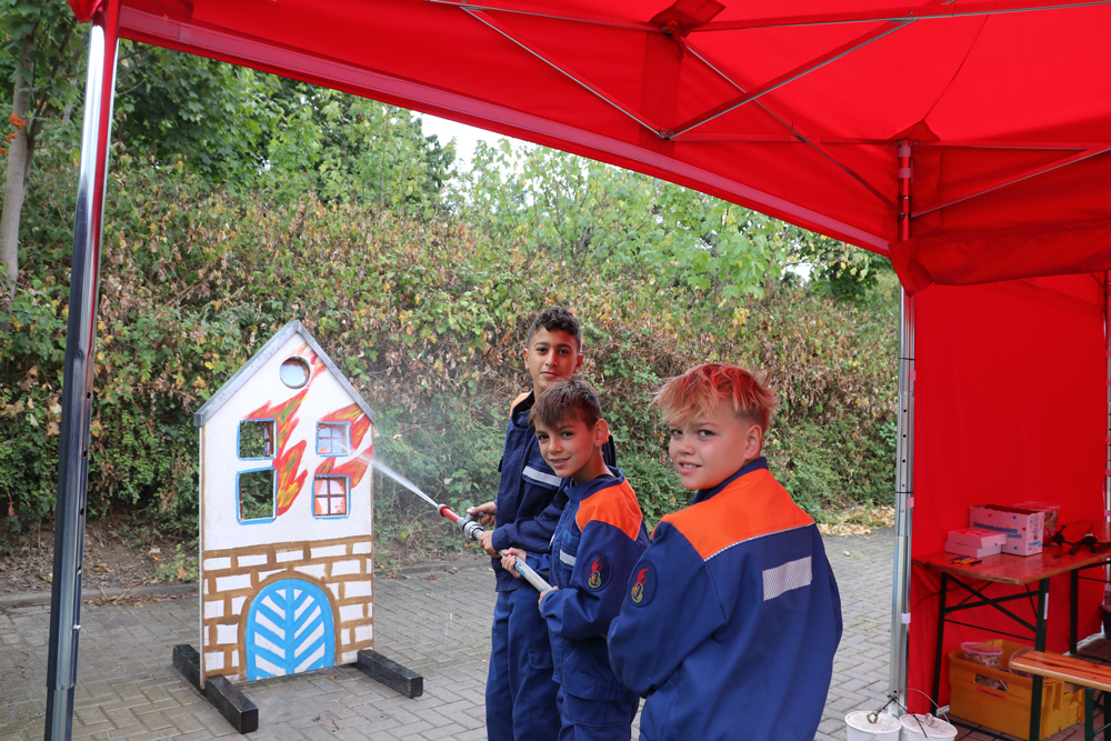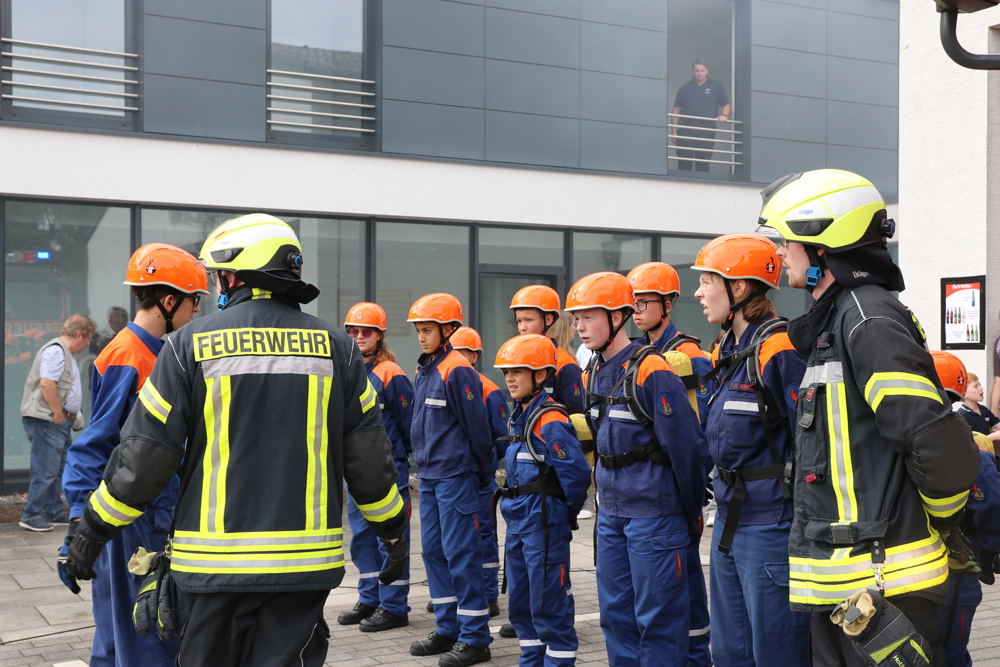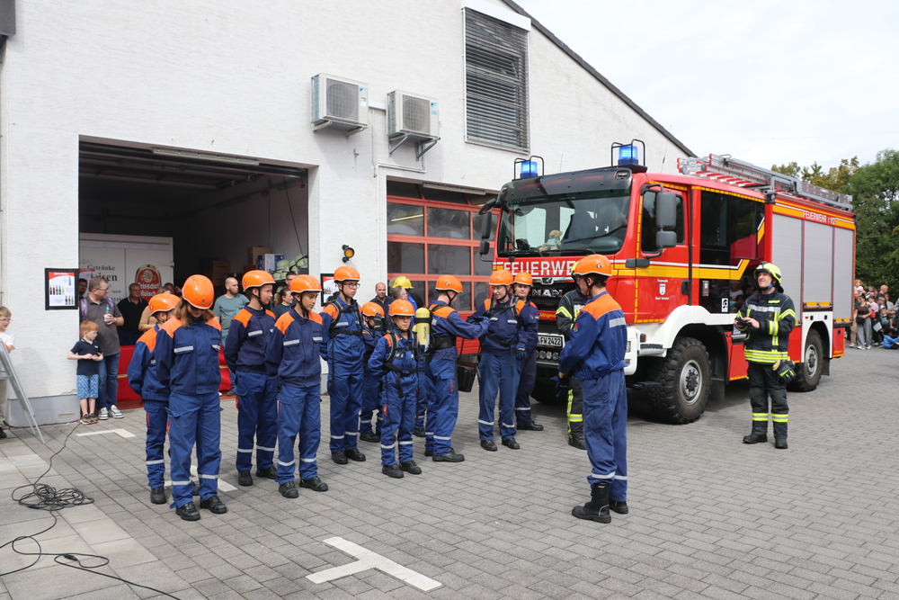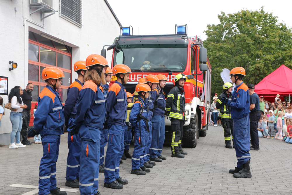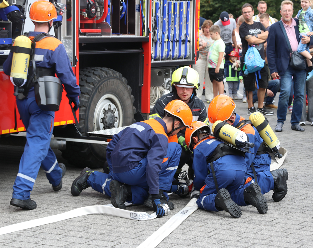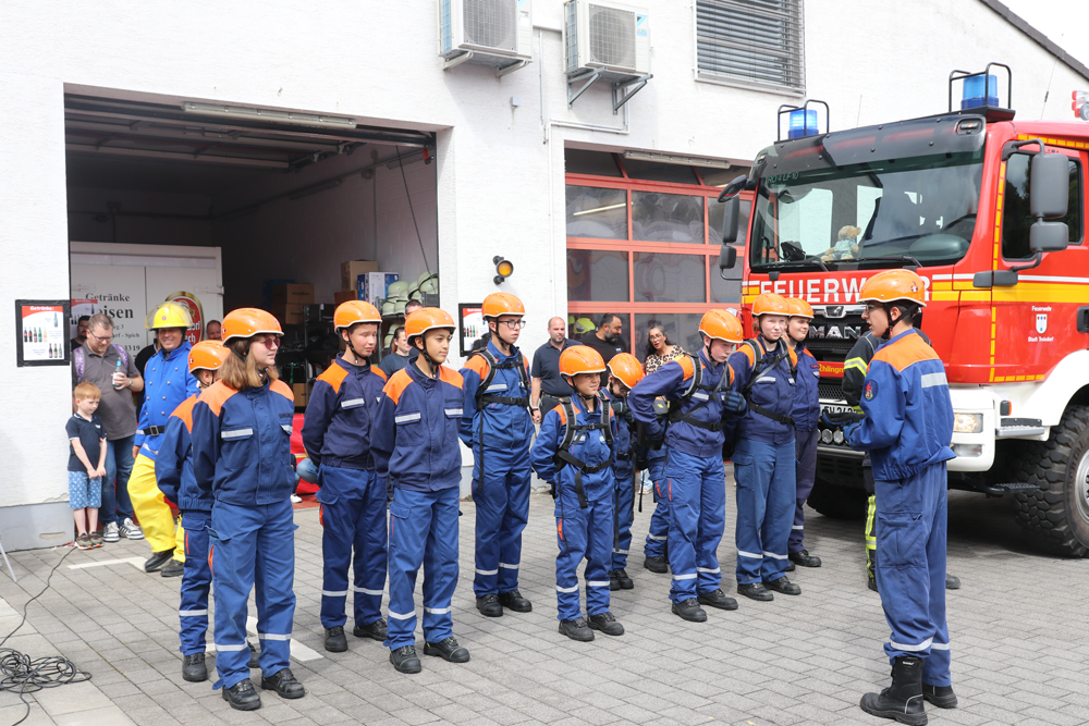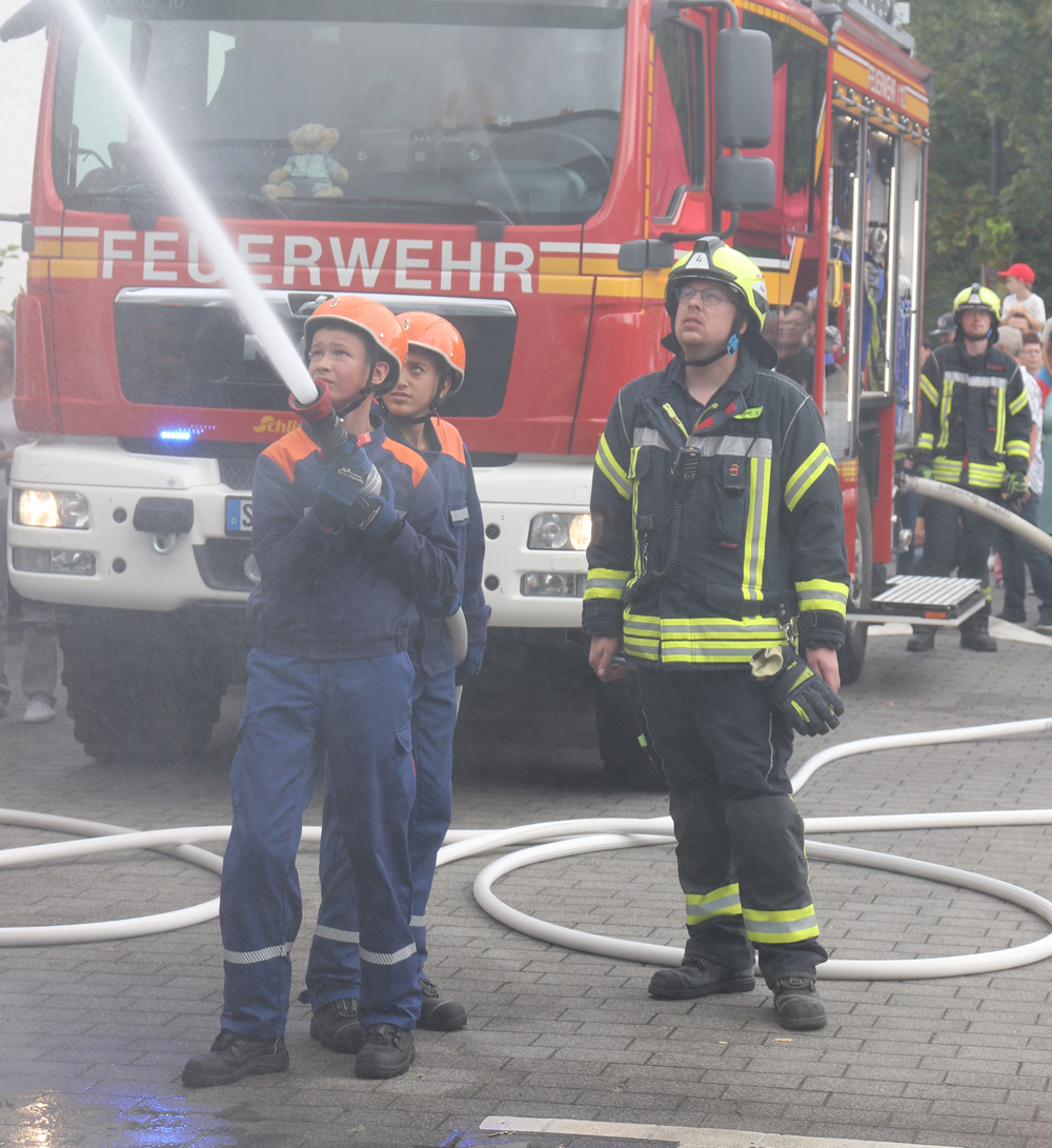 Um 14 Uhr präsentierte die Jugendfeuerwehr Sieglar ihr Können bei einer Übung.