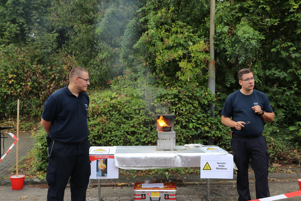 Zusätzlich wurden Vorführungen einer Fettexplosion (im Miniaturformat) sowie eines Rauch-Demonstrationshauses zum Verhalten im Brandfall angeboten.