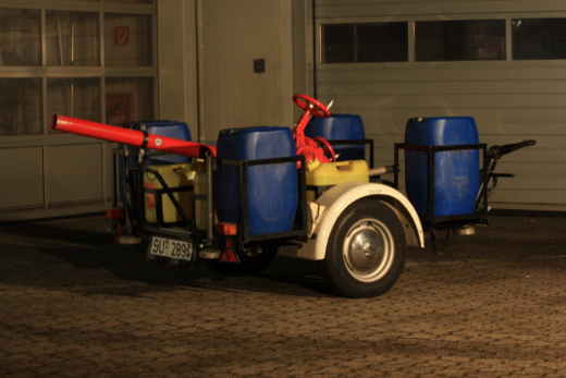 Ein Schaum-Wasser-Werfer ist ein Anhänger der Feuerwehr, welcher mit einem fest verbauten Schaum- und Wasserwerfer und ggf. diversen Schaummittelgebinden ausgestattet ist. Die Leistung des Werfers kann bis zu 2400 Liter Wasser pro Minute betragen. Wurfweiten bis zu 70 Meter sind möglich. |