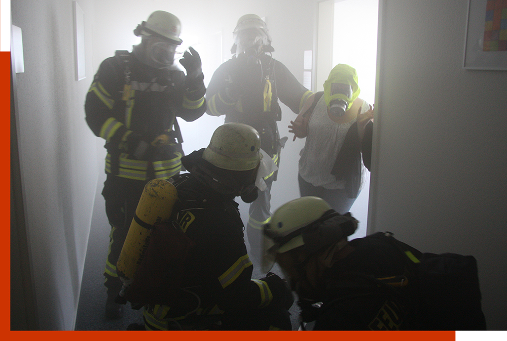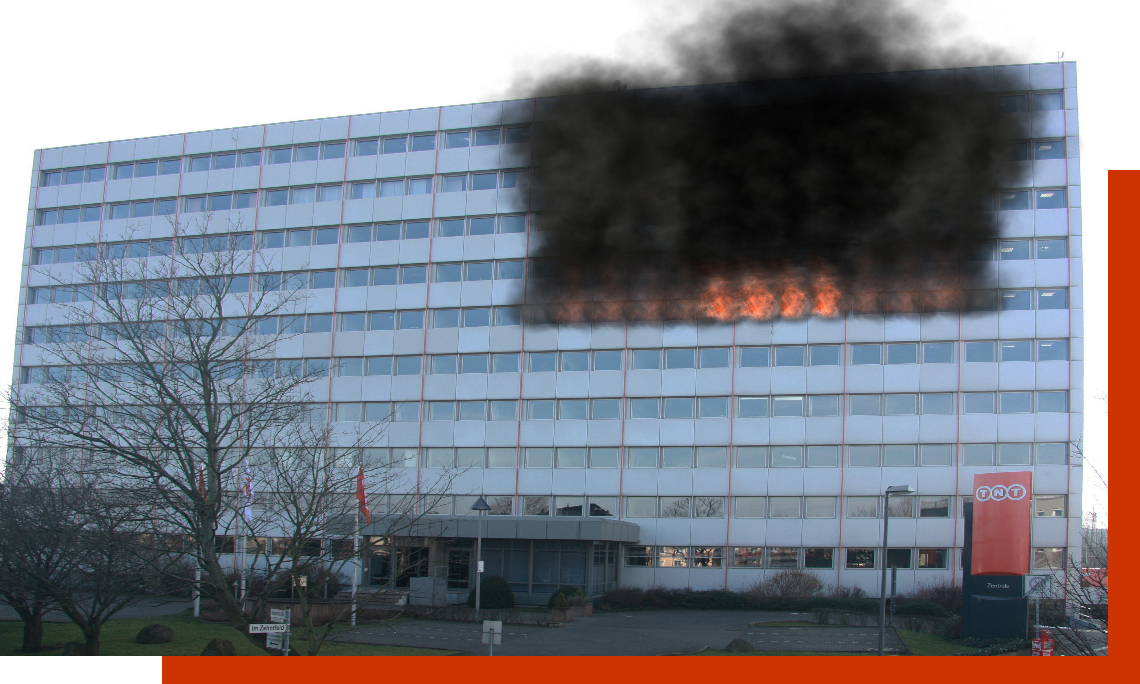 Die Alarmierungen am 21.04. sowie das Szenario ließen schreckliches erahnen - Gott sei Dank handelte es sich nur um eine unangekündigte, unter strenger Geheimhaltung in Federführung des Sieglarer Löschgruppenführers vorbereitete, Alarm- und Vollübung der gesamten Feuerwehr Troisdorf. Mit großzügiger Unterstützung der Firma TNT Express GmbH und einiger Familienangehörigen der Sieglarer Kameraden, konnte im Verwaltungsgebäude ein Feuer im 5. OG und das entsprechende Vorgehen in Hochhäusern von der gesamten Wehr geübt werden. |