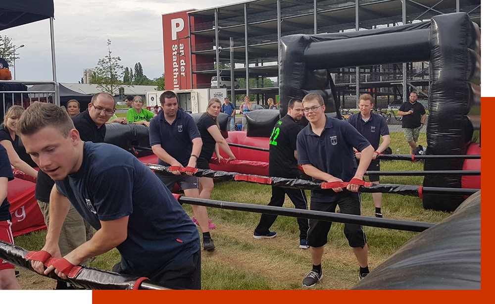 Am Menschenkicker-Turnier anlässlich des Stadtfeuerwehrtages der Löschgruppe Mitte am 29.04. rund um die Stadthalle Troisdorf nehmen zwei Mannschaften der Löschgruppe teil. Am Ende wird die Vizemeisterschaft gefeiert. |