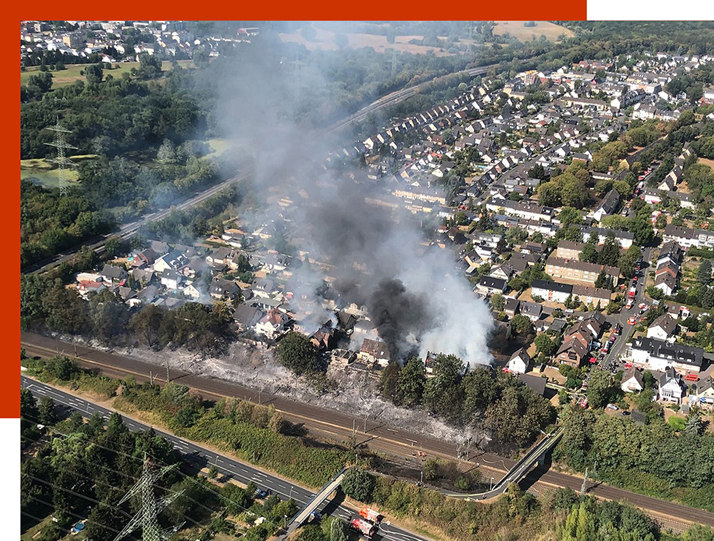 Beim Großeinsatz „Böschungsbrand“ am 07.08. in Siegburg, bei dem auch mehrere Häuser zerstört und beschädigt wurden, unterstützen die Sieglarer Kameraden von Beginn an. Letztendlich werden Einsatzkräfte aus dem gesamten Rhein-Sieg-Kreis zur Unterstützung alarmiert. |