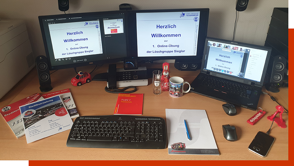 Daher werden wir kreativ und digital. Am 11.04. führen wir unsere erste Online-Übung in der Geschichte der Löschgruppe durch. Die teilnehmenden Kameradinnen und Kameraden sind hocherfreut sich im Lockdown zumindest auf diese Weise per Video zu sehen und miteinander reden zu können. |