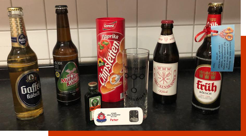 Anfang des Jahres 2021 versendet die Löschgruppenführung an alle Kameradinnen und Kameraden Pakete mit entsprechenden Utensilien sowie 4 verschiedenen Kölsch-Flaschen, sodass am 08.01. unsere virtuelle Jahresbeginnfeier u.a. mit digitaler Kölner Brauhaustour stattfinden kann. Dabei besucht Kamerad Peter Kern mit uns auf gekonnte und virtuelle Weise insgesamt 4 verschiedene ausgewählte Kölner Brauereien. Neben vielen interessanten Anekdoten zur Kölschen Brauereikunst, können die Teilnehmer an einem Gewinnspiel teilnehmen. Auch der traditionelle Foto-Jahresrückblick durfte nicht fehlen.