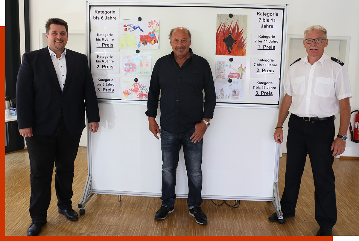 Anlässlich des 25-jährigen Jubiläums der Jugendfeuerwehr Sieglar findet von Juni bis Ende August ein Malwettbewerb statt. Am 02.09. trifft sich das Juroren-Team bestehend aus dem Künstler Josef Hawle, Bürgermeister Alexander Biber und dem Leiter der Feuerwehr Troisdorf Stefan Gandelau im Schulungsraum der Feuerwache zur Auswertung der Gewinnerbilder in 3 verschiedenen Kategorien. Insgesamt wurden 78 Bilder von Kindern im Alter von 2 bis 11 Jahren sowie Kindergartengruppen eingesendet. |