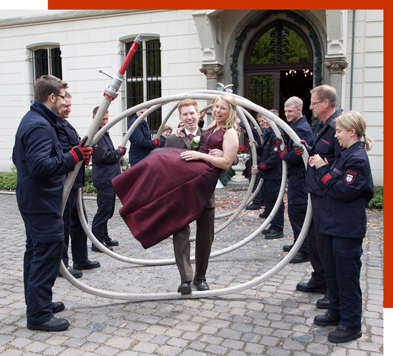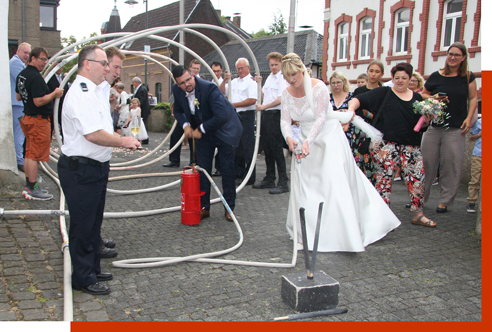 Im Juni und Juli gehen wieder zwei Kameraden den Bund der Ehe ein. Die Löschgruppe überrascht die beiden Brautpaare jeweils am Standesamt sowie an der Sieglarer Kirche St. Johannes um ihnen die Ehre zu erweisen und zu gratulieren. |