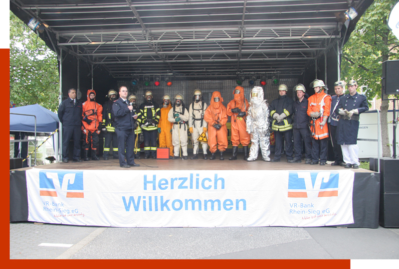 Beim Stadtfeuerwehrtag während des Familienfestes in der Troisdorfer Fußgängerzone am 12.05. können Interessierte am Stand der Löschgruppe in die Rolle eines Feuerwehrmanns schlüpfen und Erinnerungsfotos machen lassen. |