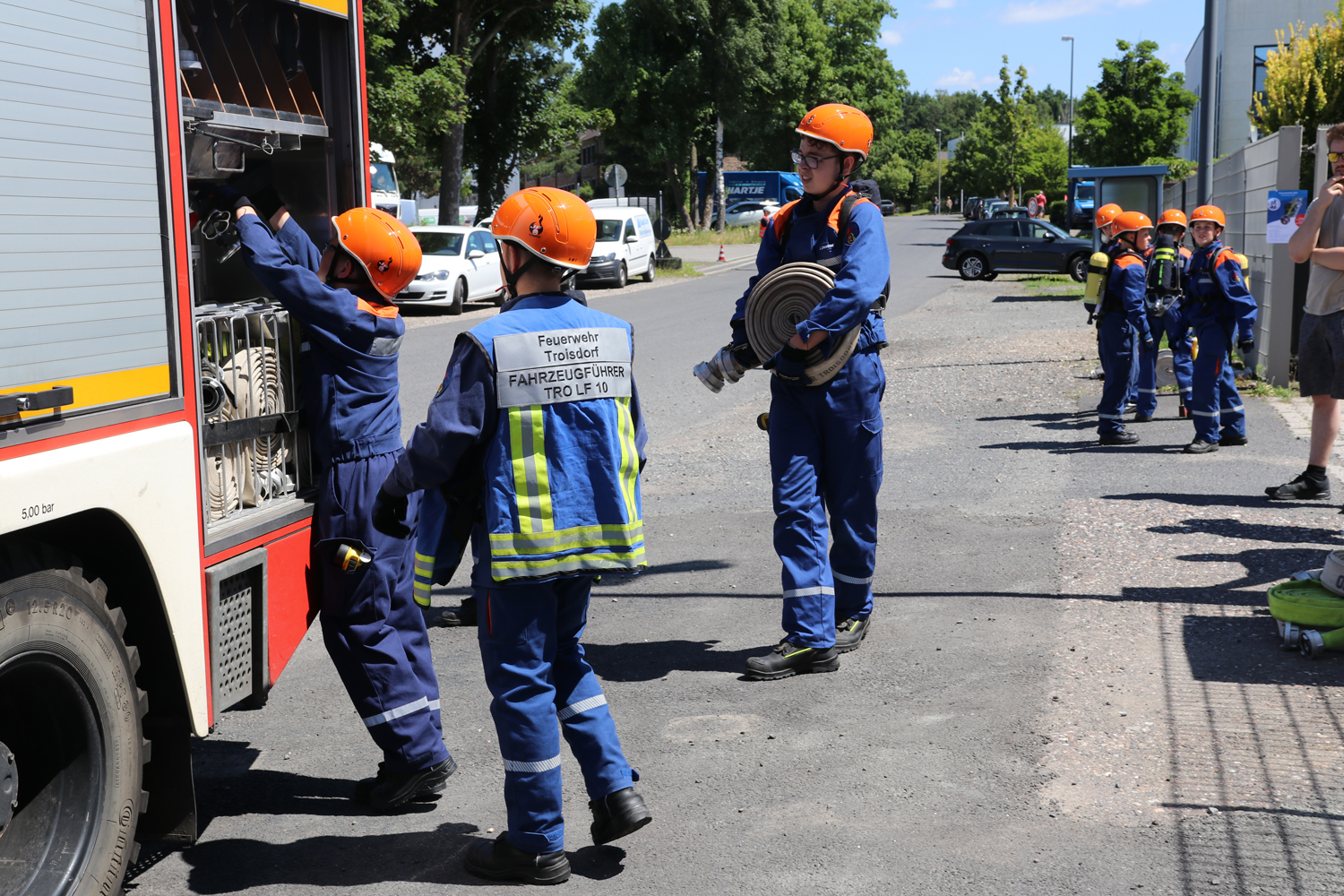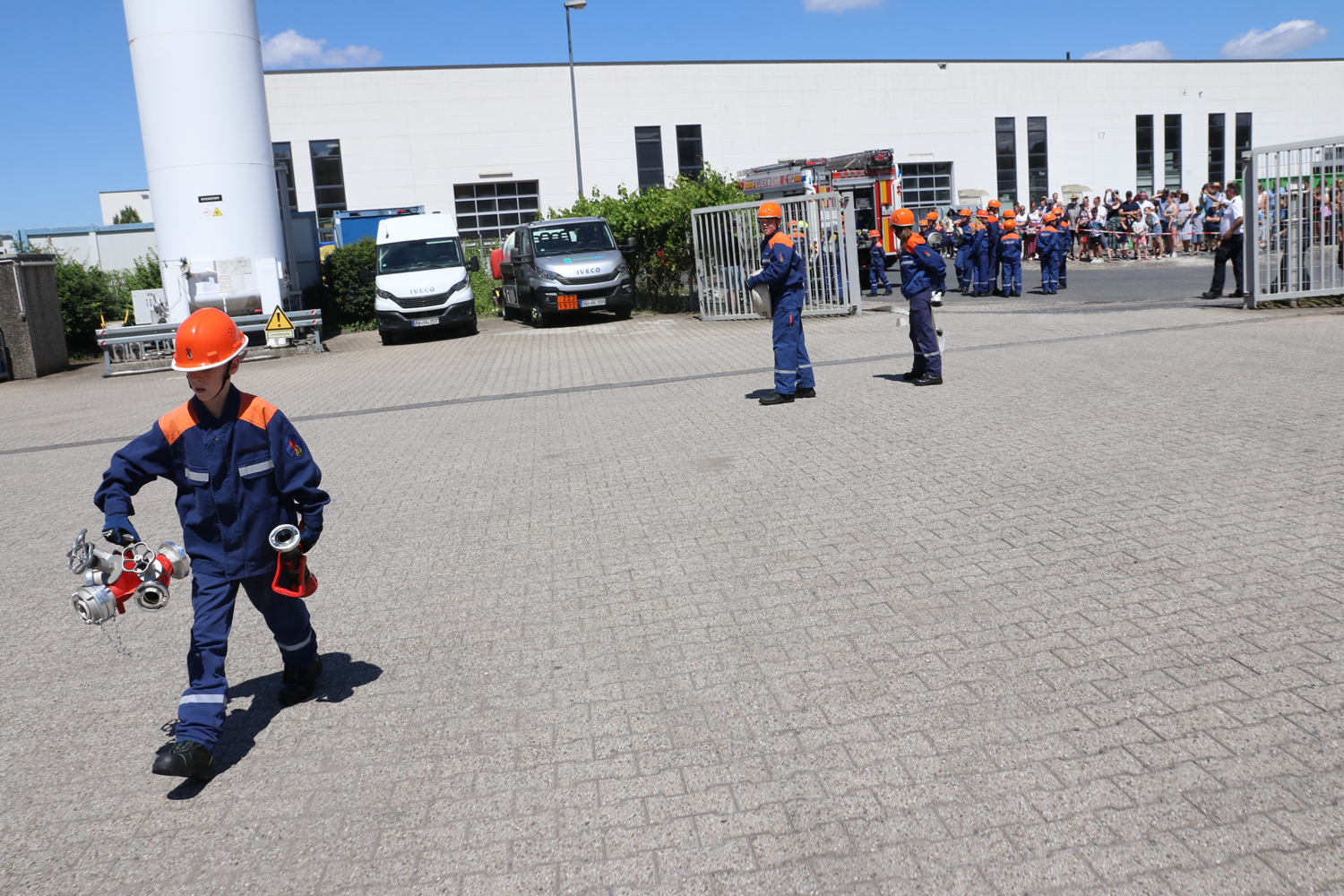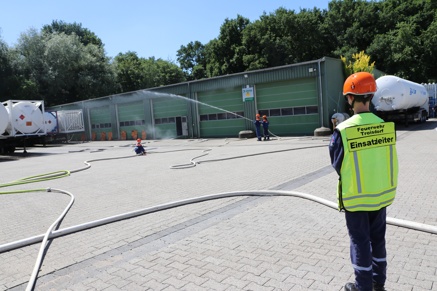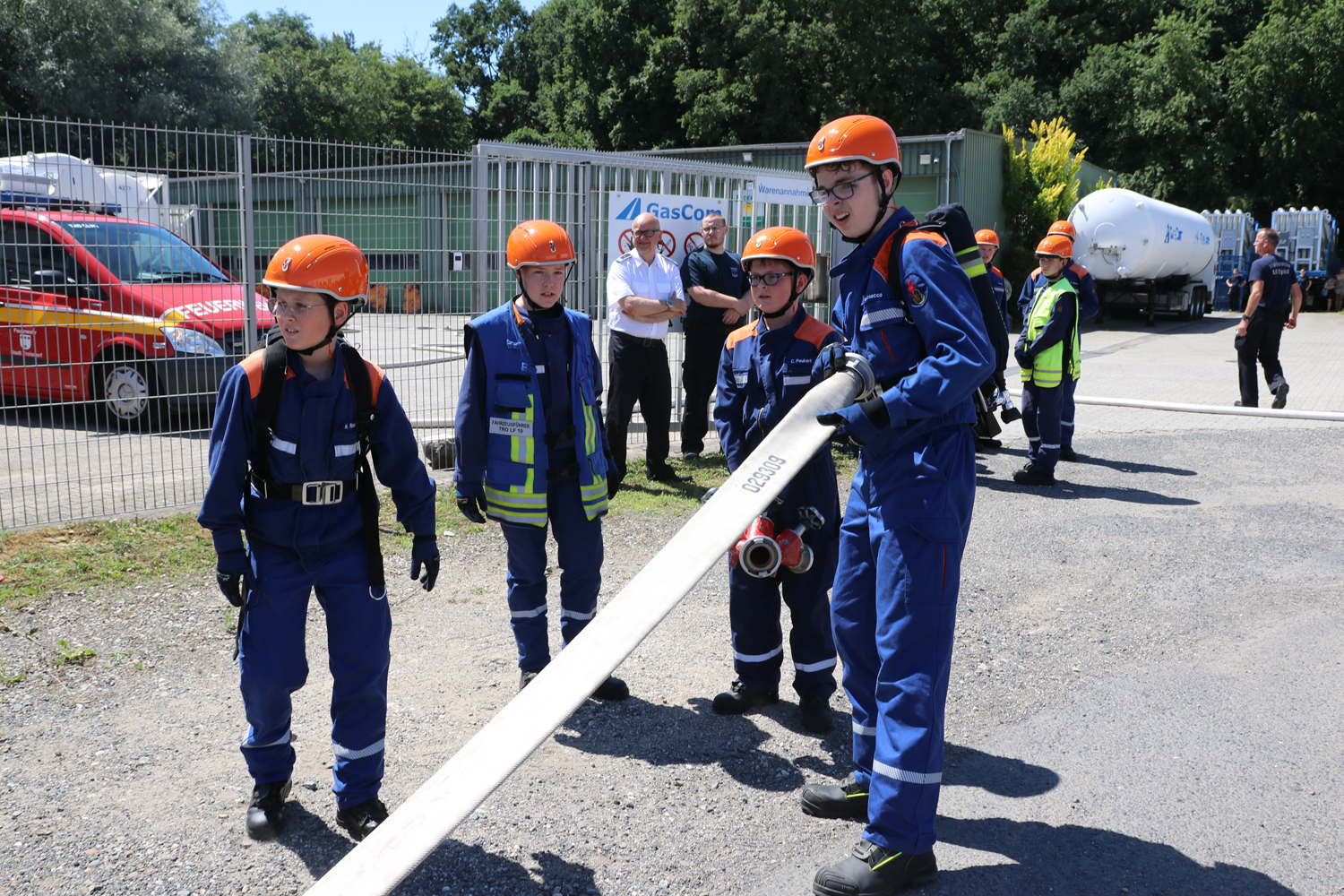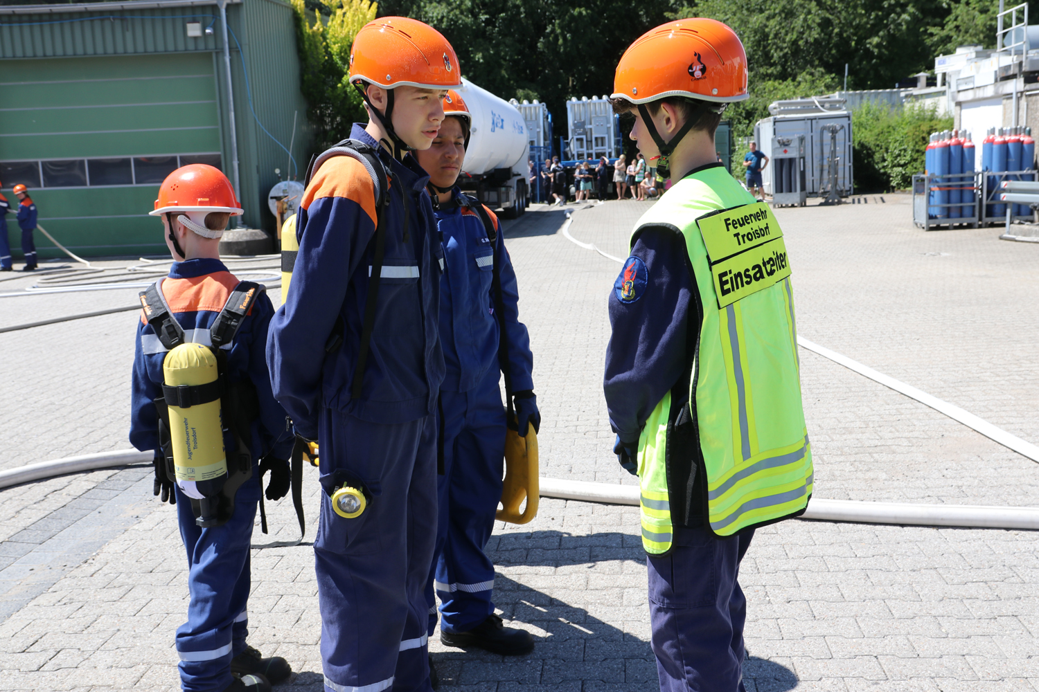 Die sechs Troisdorfer Jugendfeuerwehr-Gruppen Gruppen mit insgesamt rund 100 Kindern und Jugendlichen trafen sich an der Firma GasCom Equipment GmbH, Camp-Spich-Straße 9-11 in Spich.