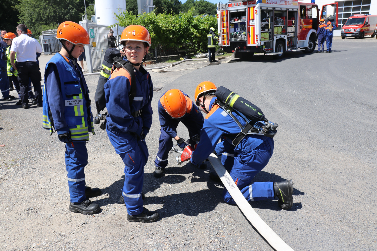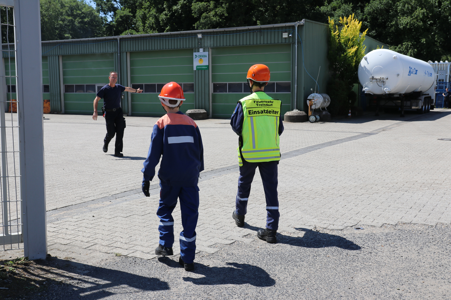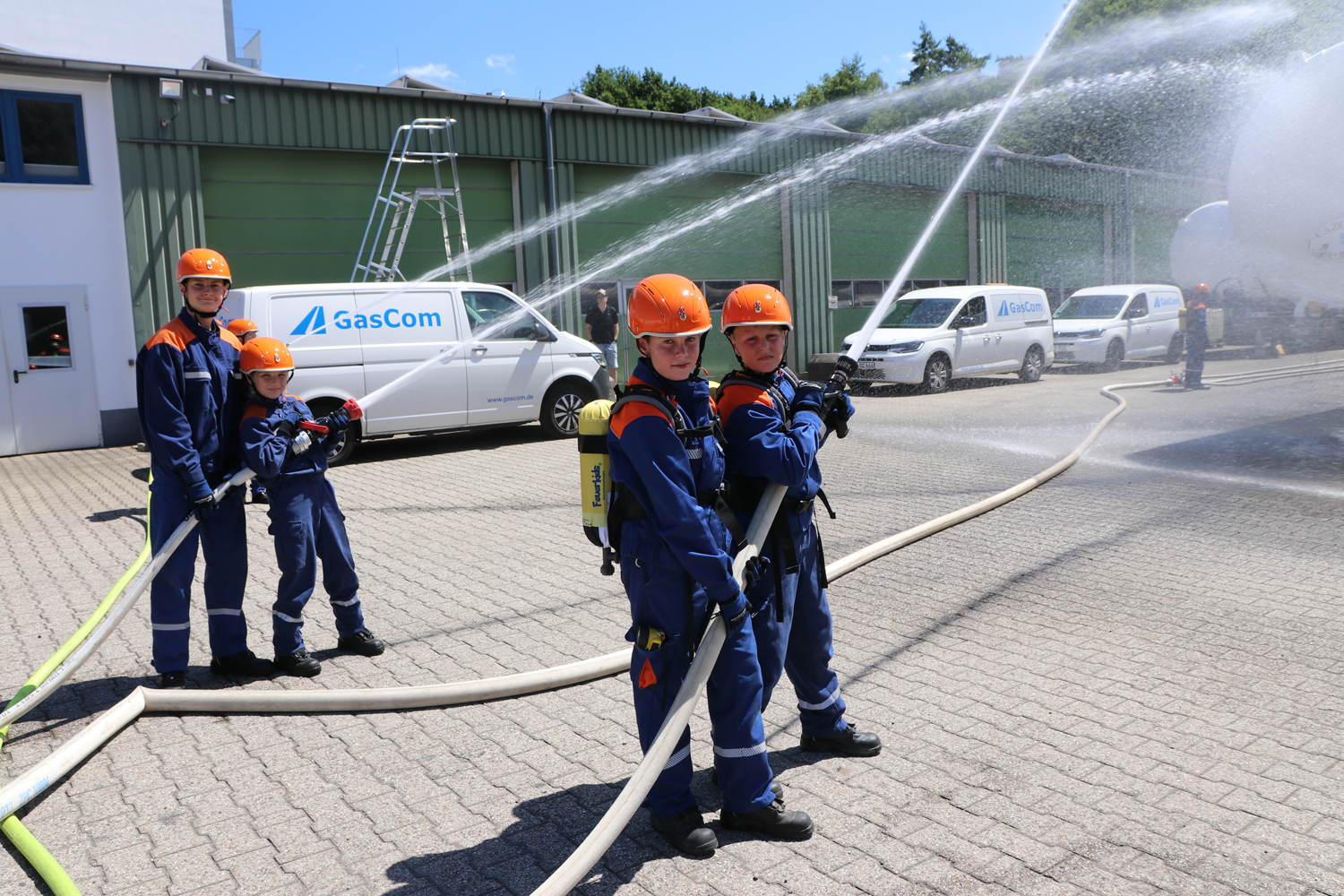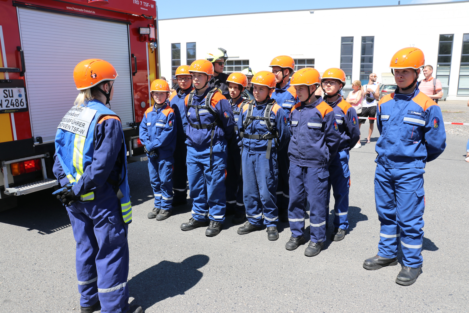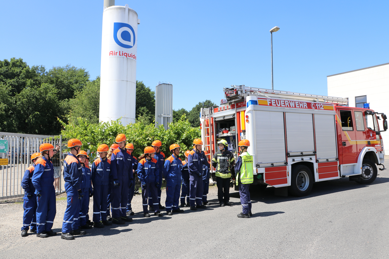 Die sechs Troisdorfer Jugendfeuerwehr-Gruppen Gruppen mit insgesamt rund 100 Kindern und Jugendlichen trafen sich an der Firma GasCom Equipment GmbH, Camp-Spich-Straße 9-11 in Spich.