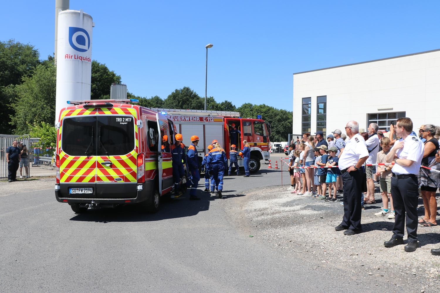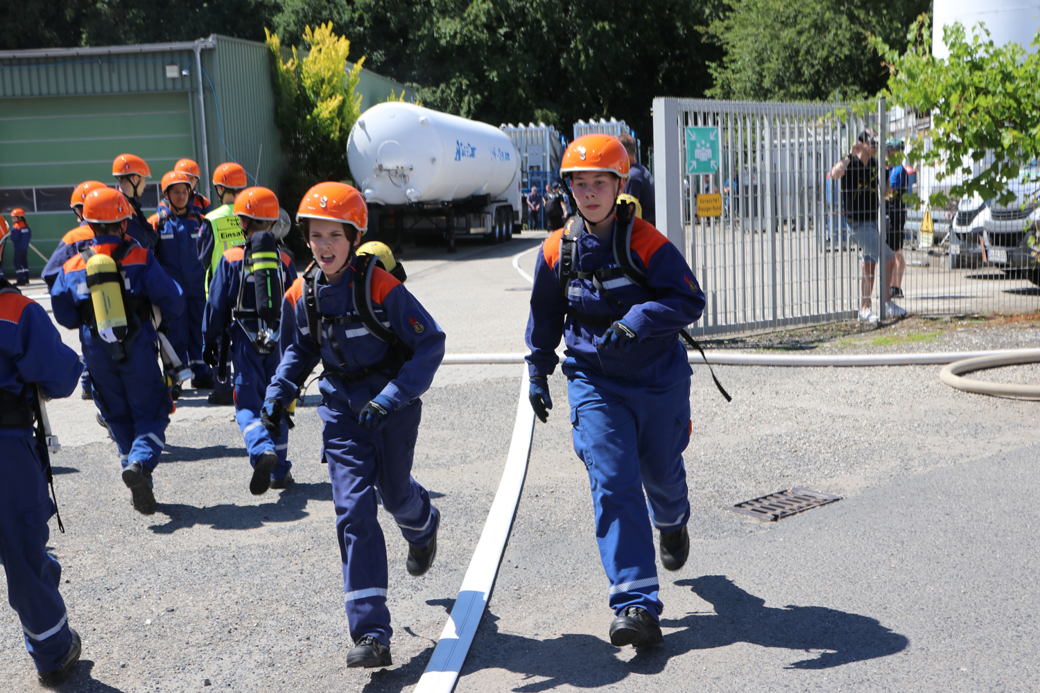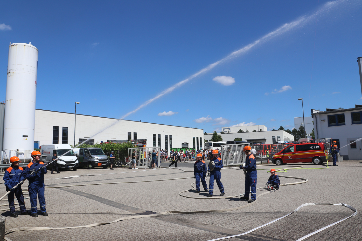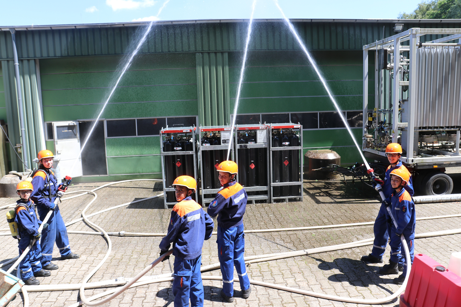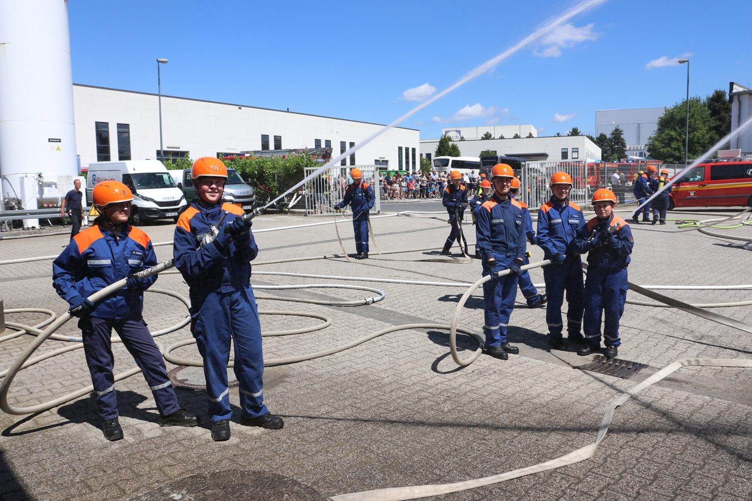Die sechs Troisdorfer Jugendfeuerwehr-Gruppen Gruppen mit insgesamt rund 100 Kindern und Jugendlichen trafen sich an der Firma GasCom Equipment GmbH, Camp-Spich-Straße 9-11 in Spich.