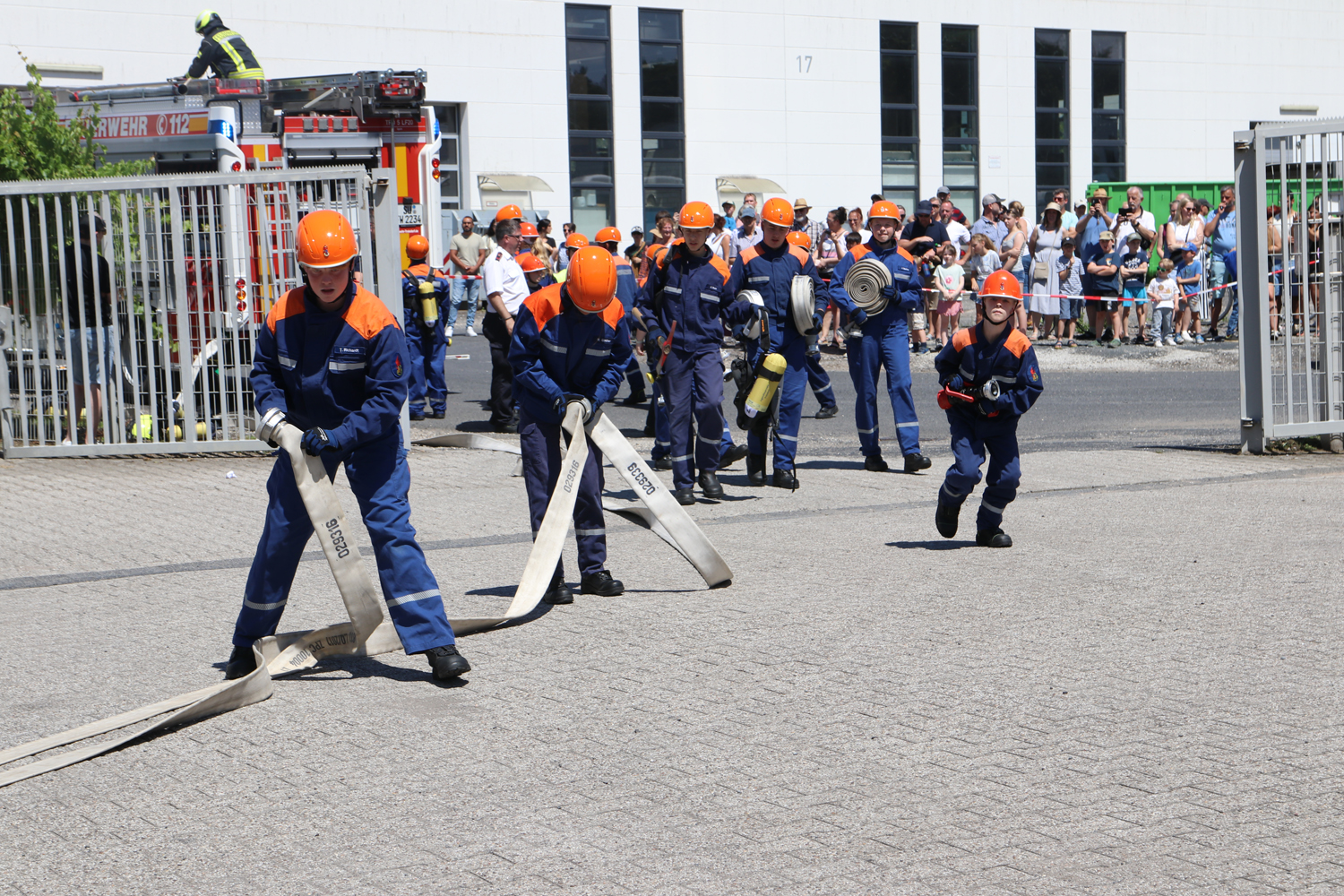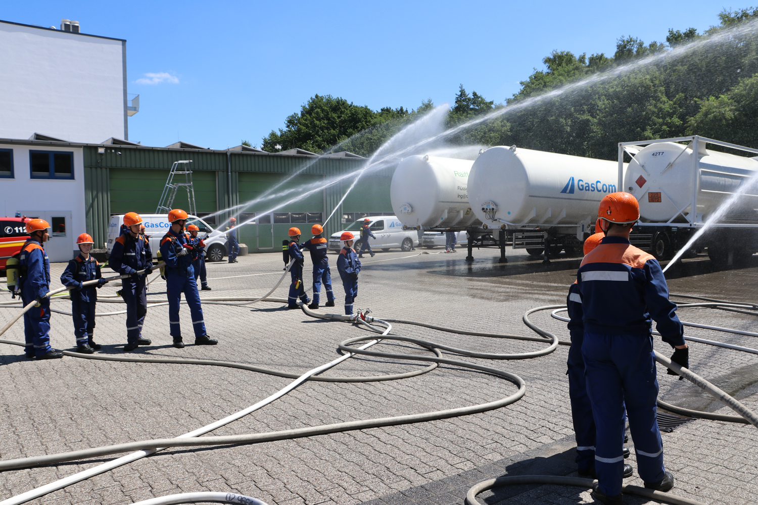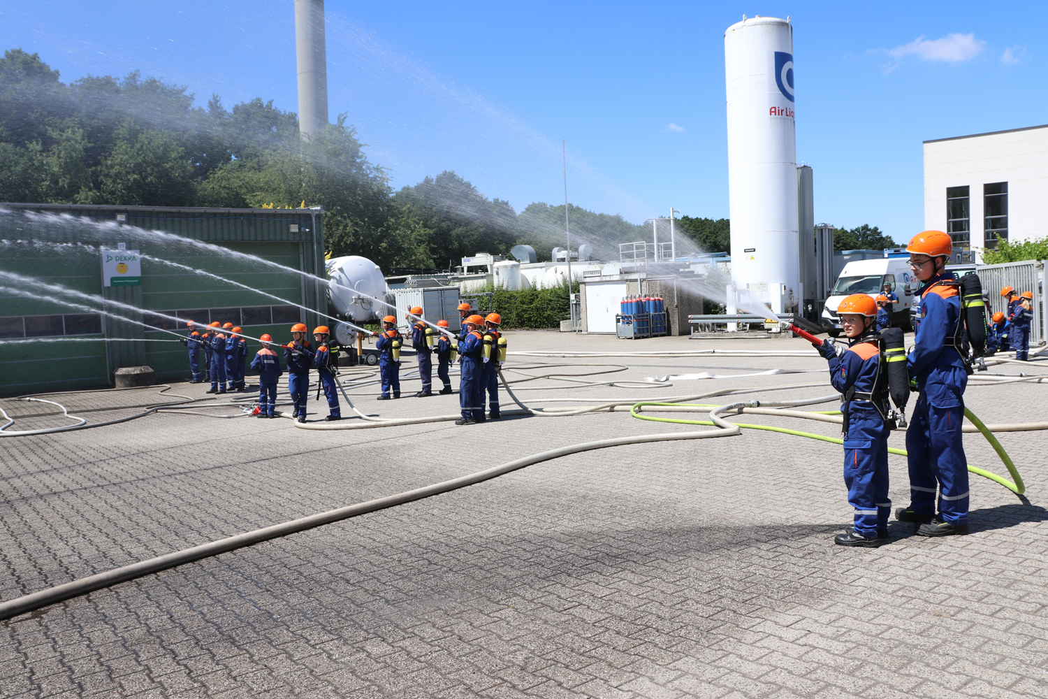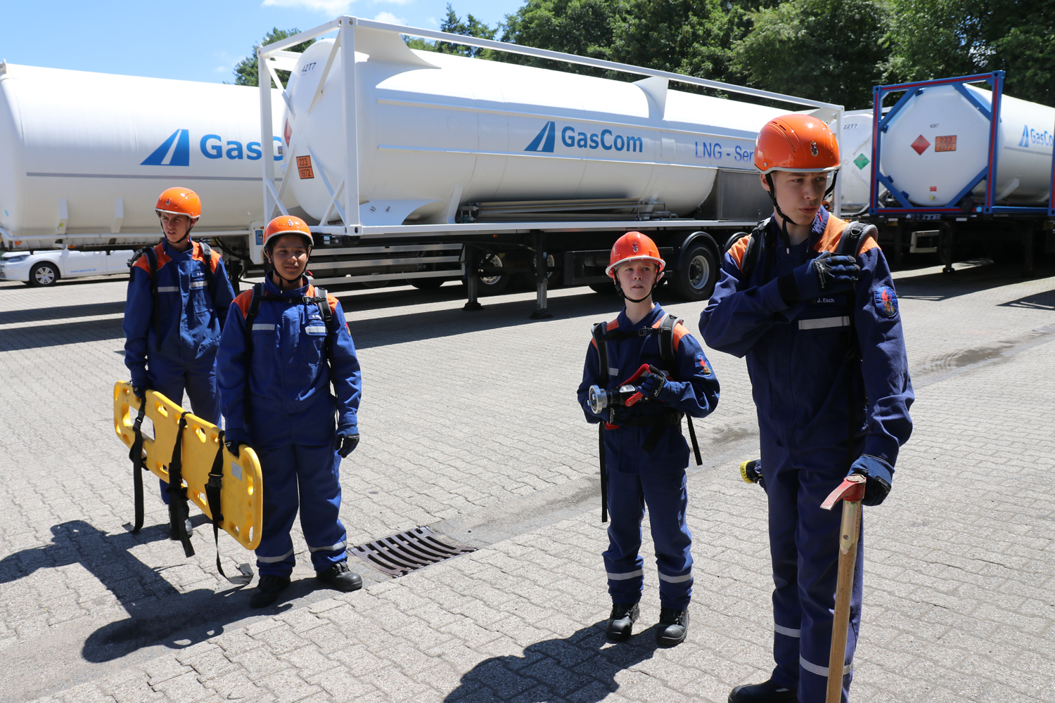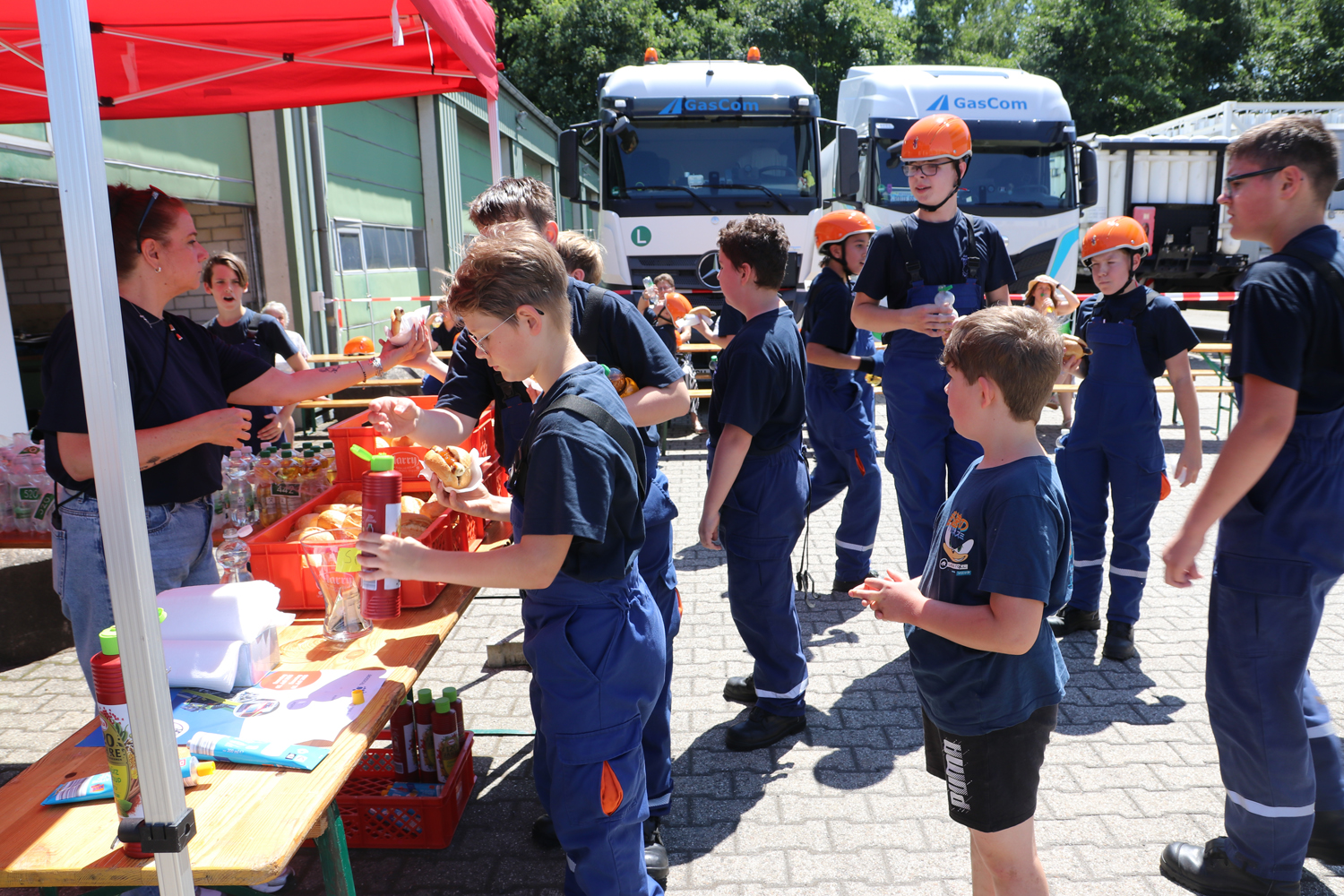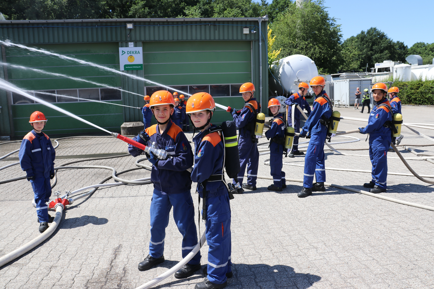 Die sechs Troisdorfer Jugendfeuerwehr-Gruppen Gruppen mit insgesamt rund 100 Kindern und Jugendlichen trafen sich an der Firma GasCom Equipment GmbH, Camp-Spich-Straße 9-11 in Spich.
