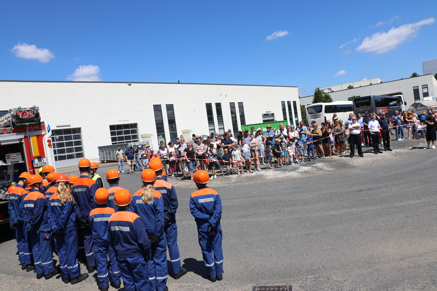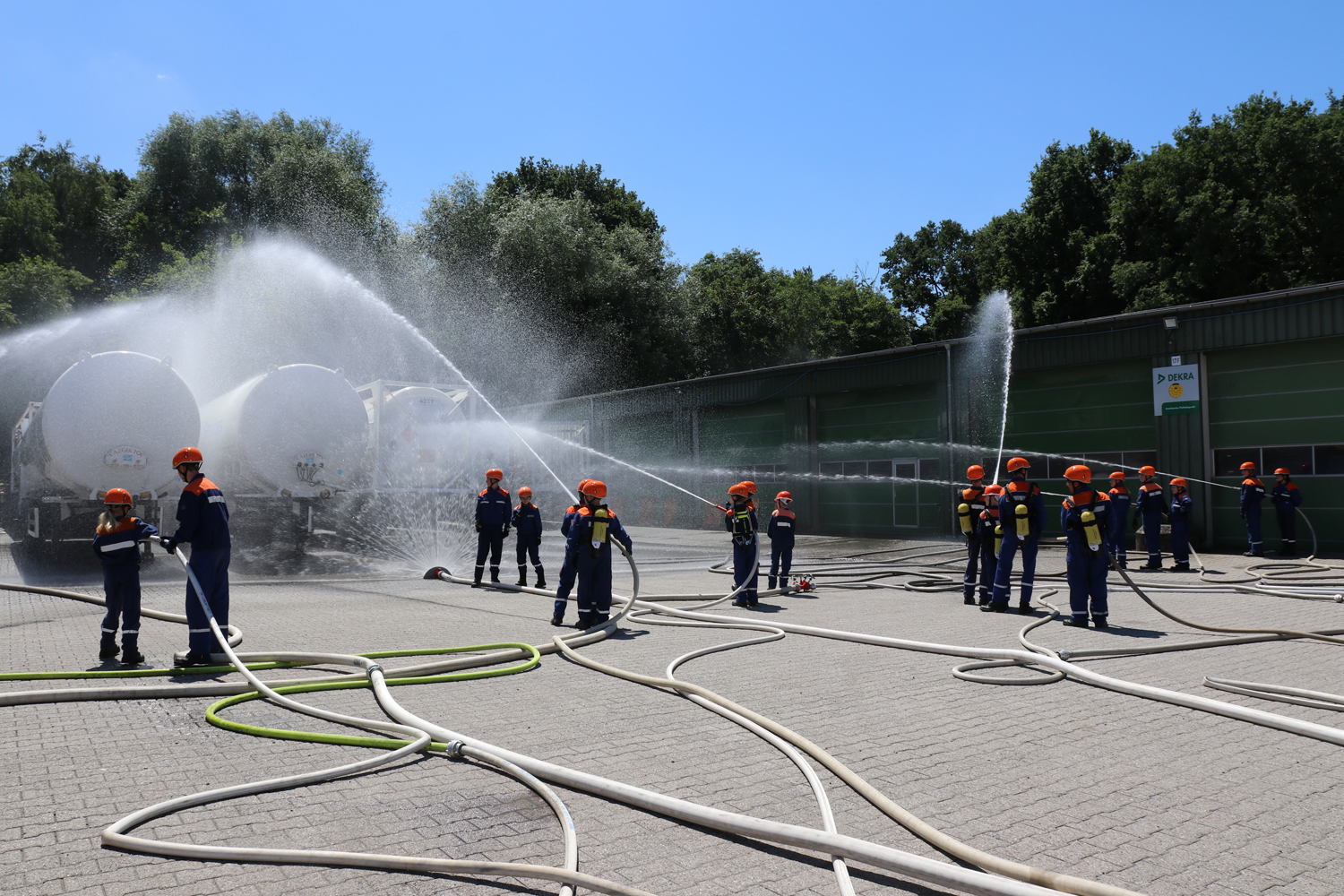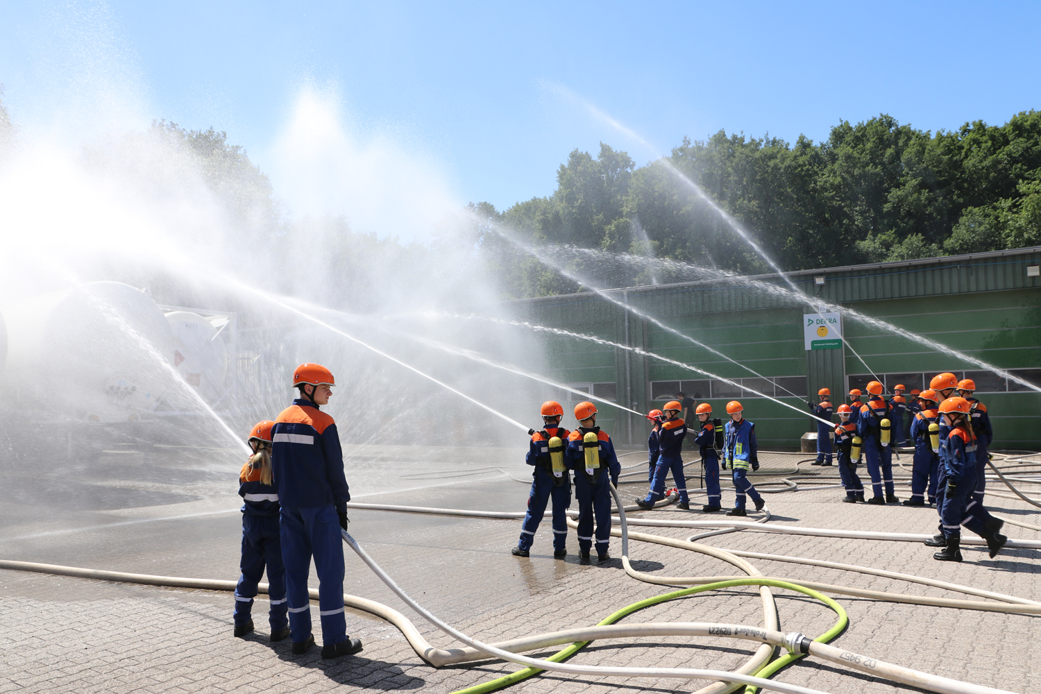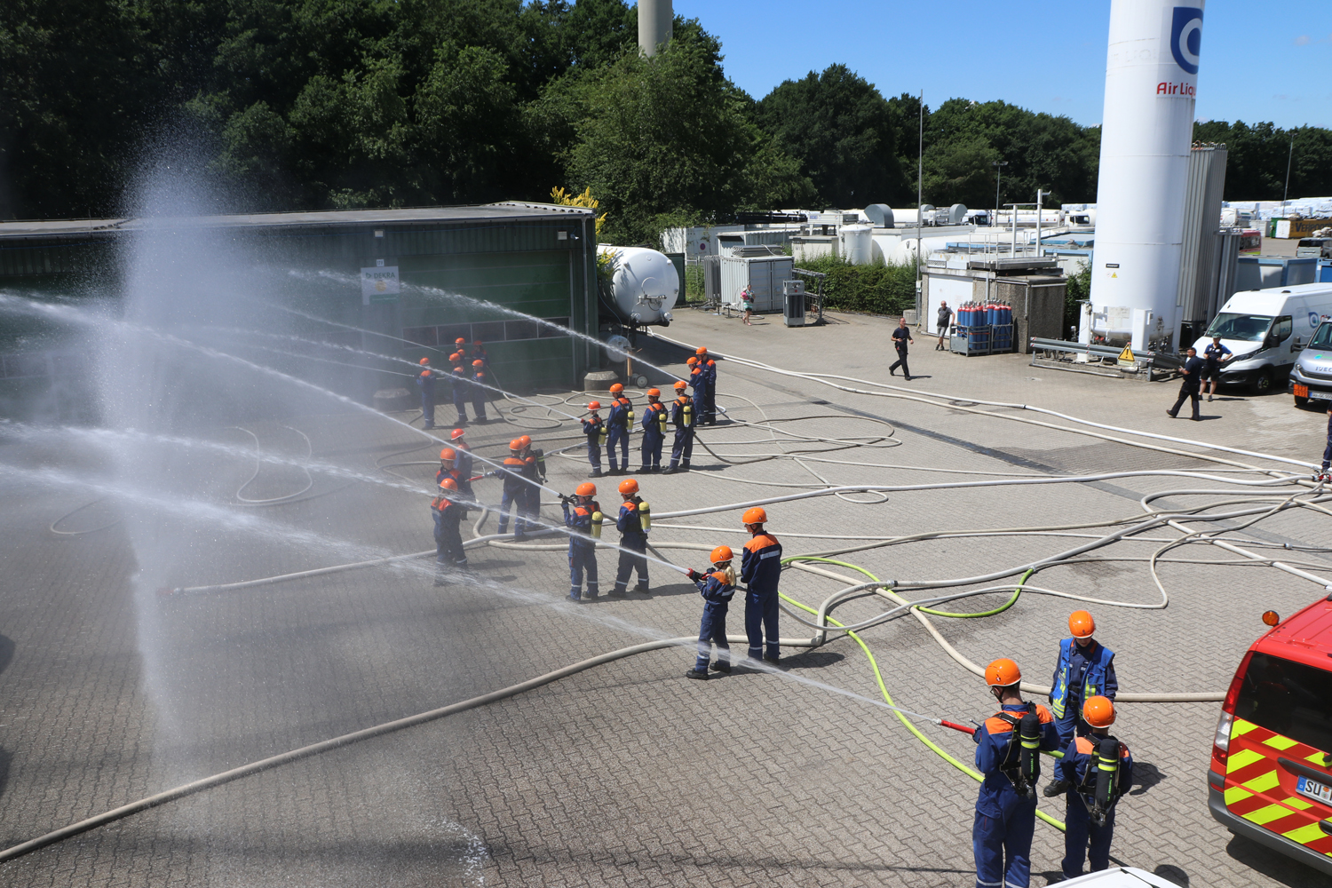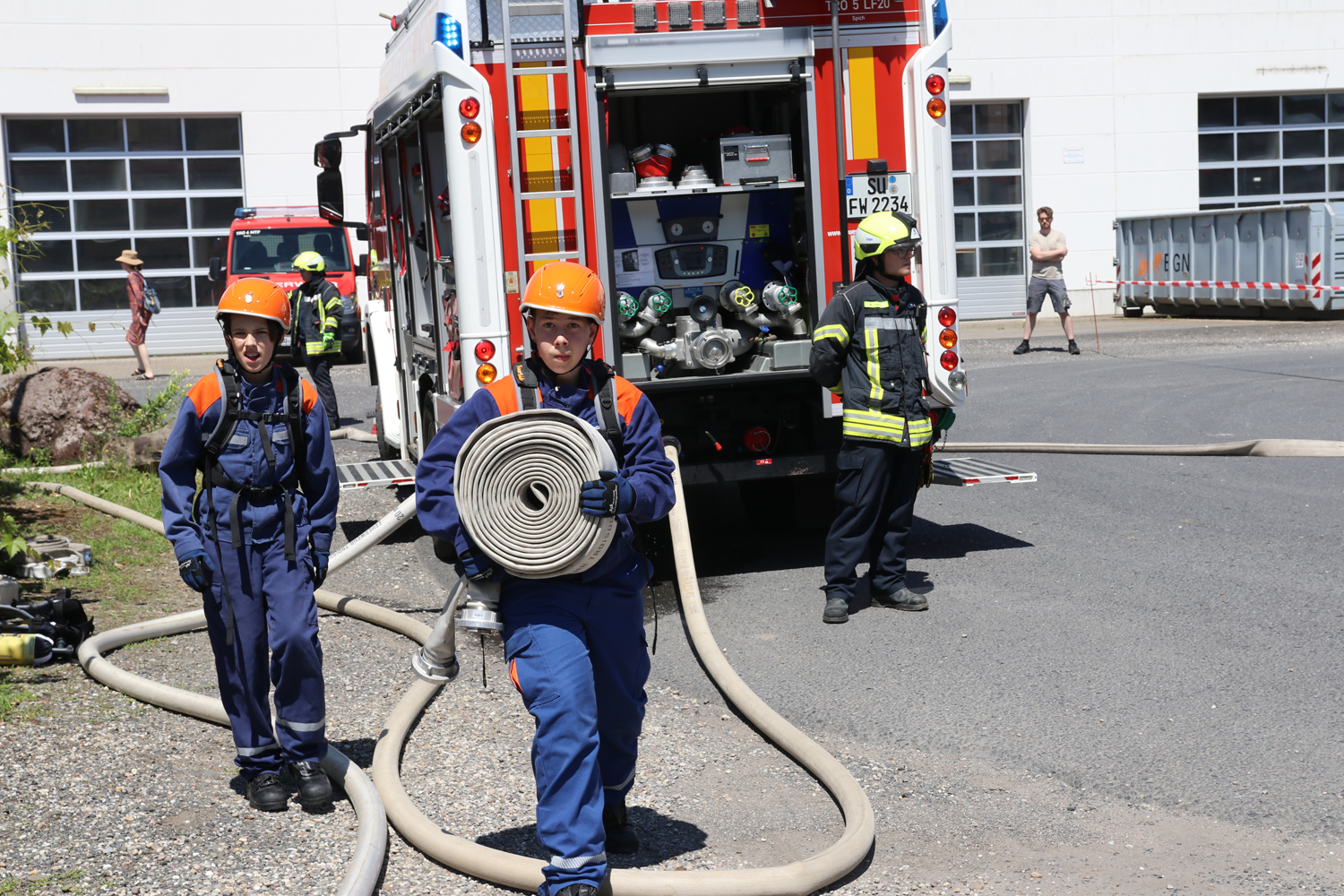 Die sechs Troisdorfer Jugendfeuerwehr-Gruppen Gruppen mit insgesamt rund 100 Kindern und Jugendlichen trafen sich an der Firma GasCom Equipment GmbH, Camp-Spich-Straße 9-11 in Spich.