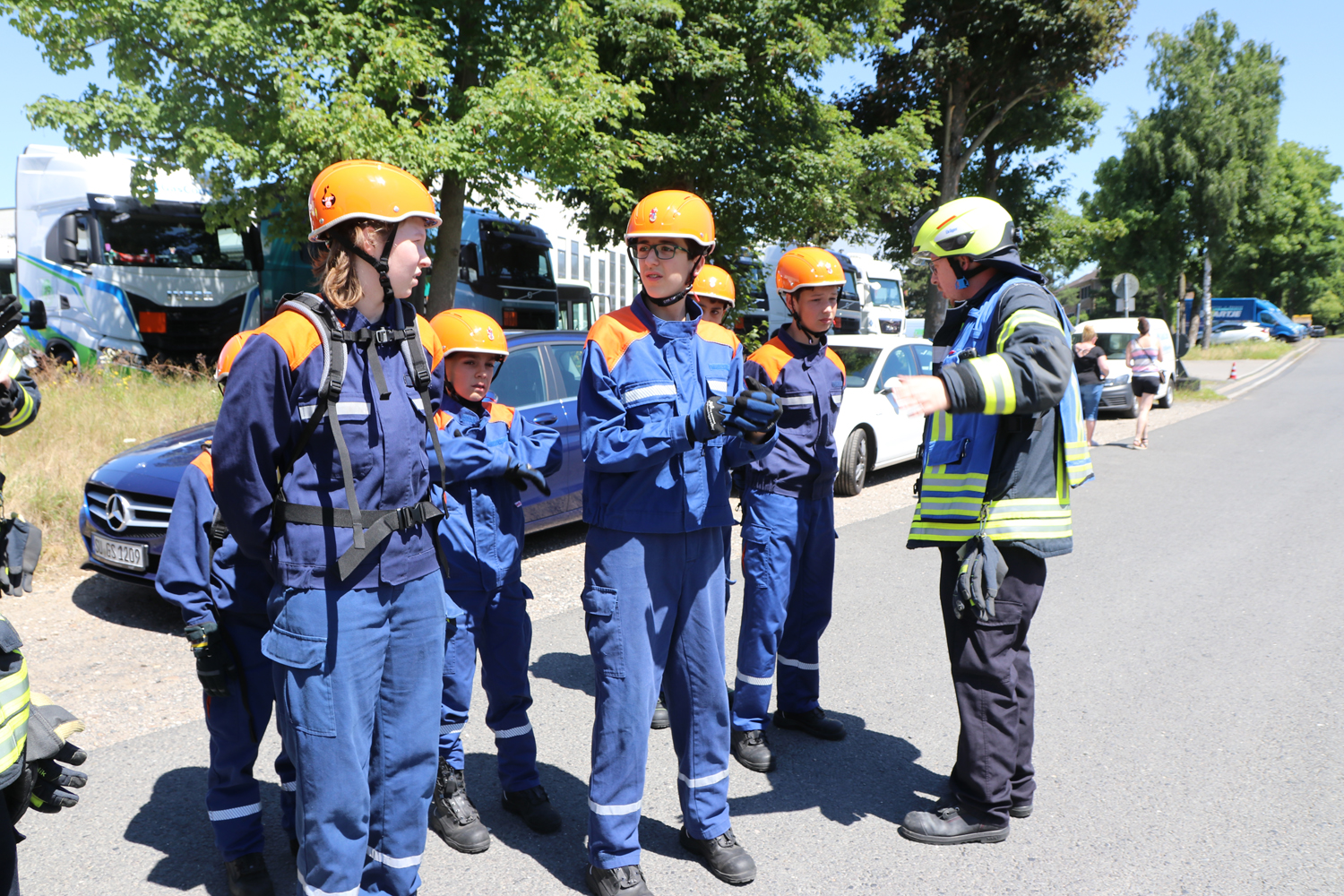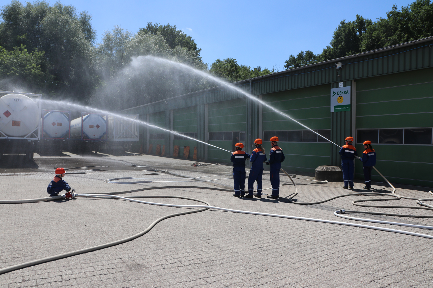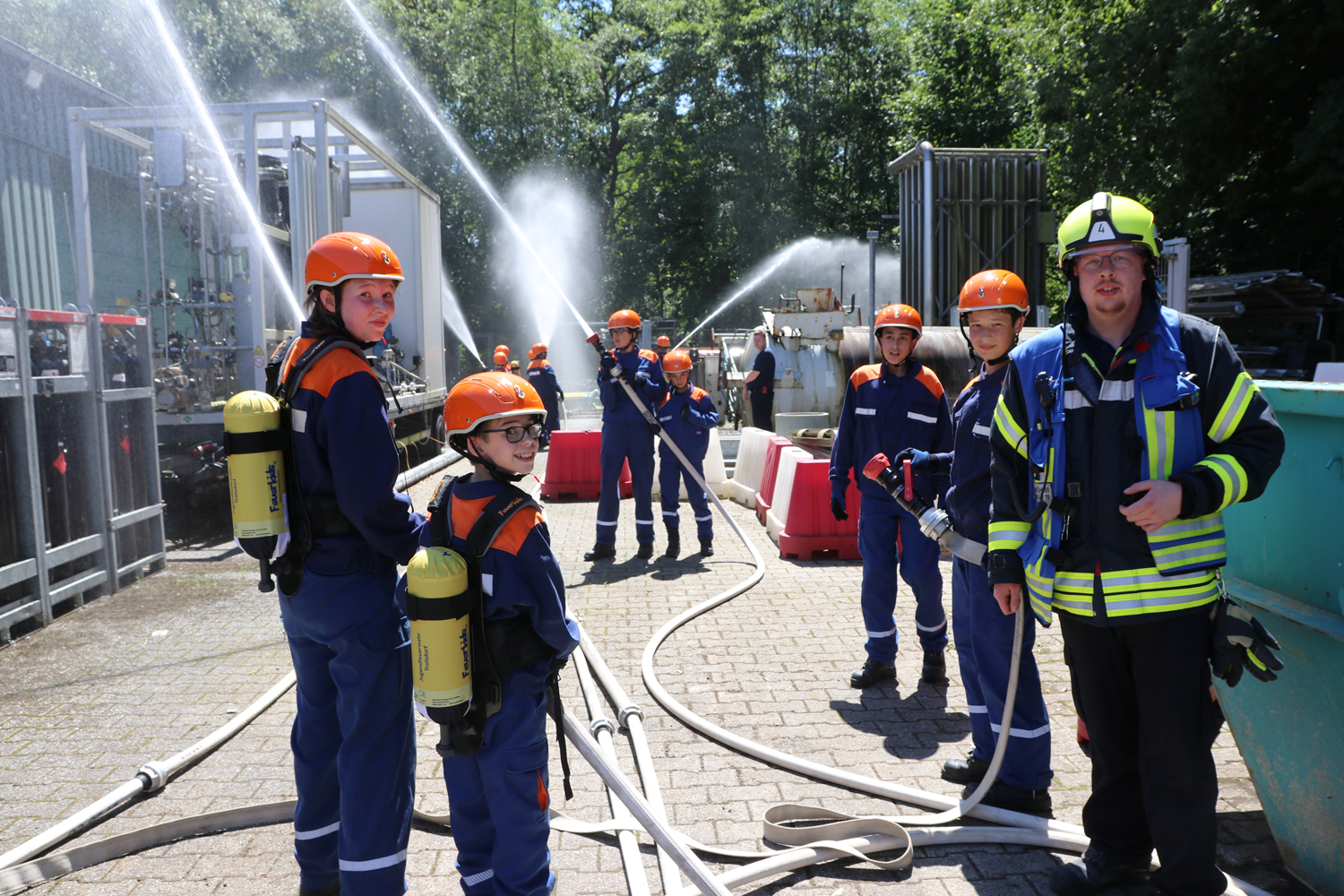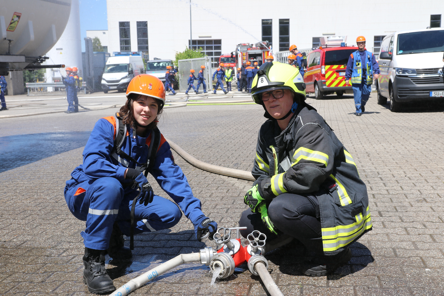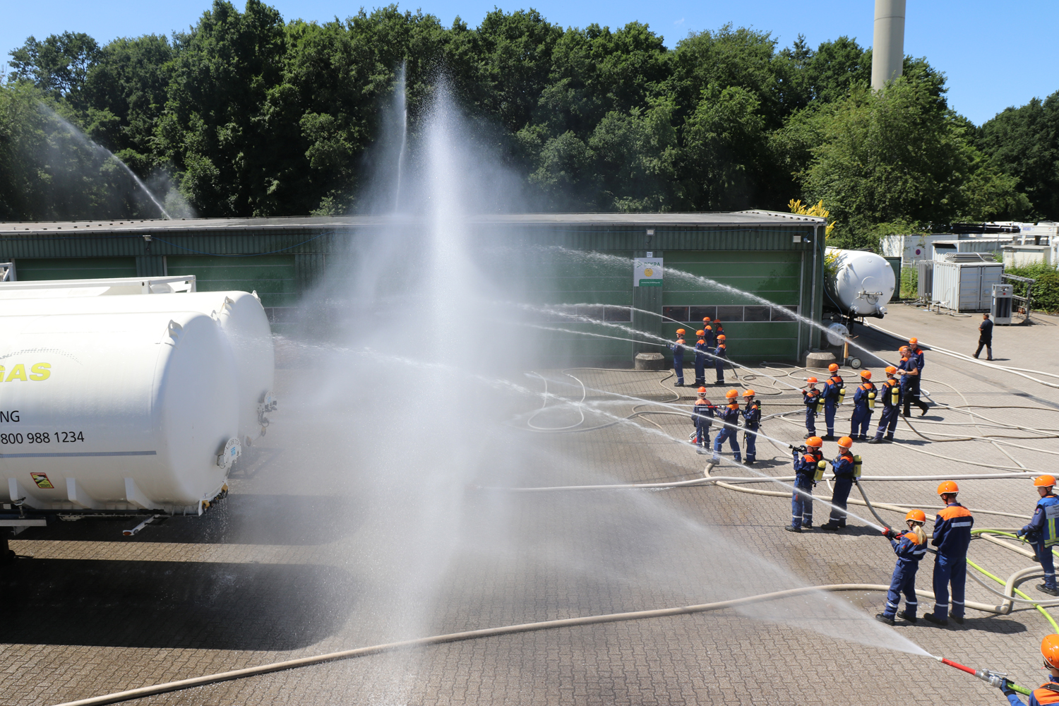 Die sechs Troisdorfer Jugendfeuerwehr-Gruppen Gruppen mit insgesamt rund 100 Kindern und Jugendlichen trafen sich an der Firma GasCom Equipment GmbH, Camp-Spich-Straße 9-11 in Spich.