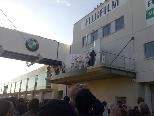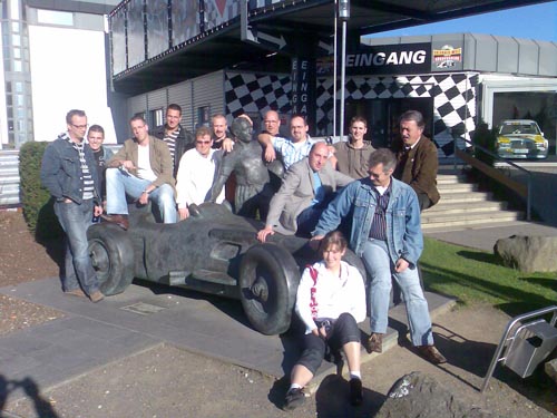 Nürburgring. Kurz vor dem Ziel machten wir im "Bike World" Mittagspause. Gut gestärkt ging es dann zum "Ring". Mit fachkundiger Führung ging es zu erst in die Boxengasse der Grand Prix Strecke. Hier hatten wir das Glück an der Siegerehrung des 9. Laufs der BF Goodrich- Langstreckenmeisterschaft teilzunehmen incl. Champagner-Dusche. Und das von der Stelle aus, die sonst die Mechaniker der Formel 1 Teams für sich beanspruchen. So standen wir Seite an Seite mit der Rennfahrer Legende Hans-Joachim Stuck.
