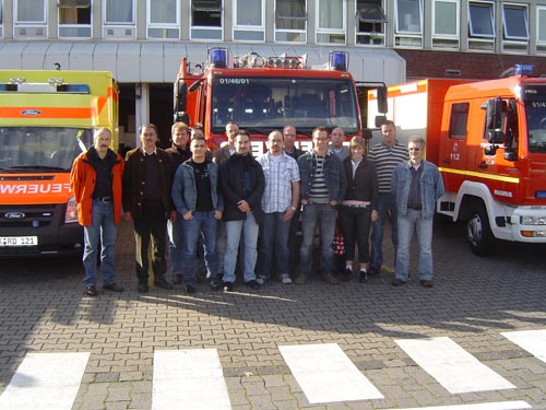 Pünktlich, kurz nach dem ersten Hahnenschrei, traf man sich am Gerätehaus. Gefrühstückt wurde dieses Mal im Bus. Serviert von unseren Stewards Stephan Dubois und Alexander Körfer. Nach kurzer Fahrt erreichten wir das erste Ziel, die Kölner Ford Werke. Hier stand die Besichtung der Werkfeuerwehr auf dem Programm. Neben einer Führung durch die Wache konnten wir die Einsatzfahrzeuge in Augenschein nehmen, welche in ihrer Ausstattung nur teilweise der Norm entsprechen. Unser Hauptaugenmerk richtete sich auf den so genannter "Multistar", welches eine Mischung aus einem Löschfahrzeug und einem Hubrettungsfahrzeug ist.