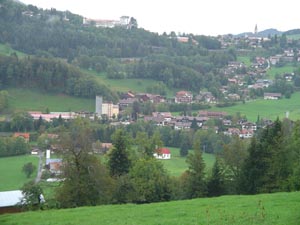Vor der Einfahrt ins Salzbergwerk Berchtesgaden am 30. Mai 2002