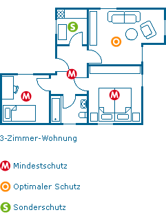 • Rauchmelder in einer 3-Zimmer-Wohnung
