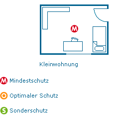 Mindest- und bei Zimmergrößen bis 60 qm auch ausreichender Schutz ist ein Rauchmelder in Zimmermitte. Bei größeren Einzimmerwohnungen empfiehlt sich ein weiteres Gerät.
