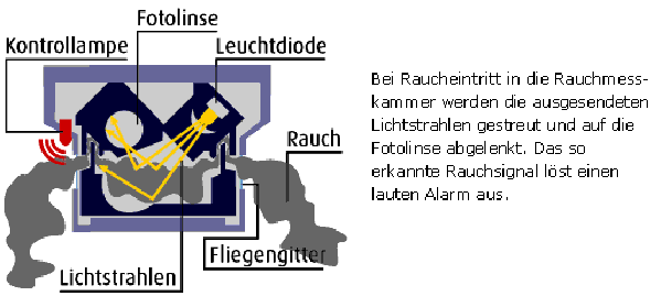 Dieses einfache, aber wirkungsvolle Prinzip ermöglicht es, dass ein optischer Rauchmelder zuverlässig im Brandfall warnen kann, ohne bei leichtem Rauch (zum Beispiel von Zigaretten) Fehlalarm zu schlagen.