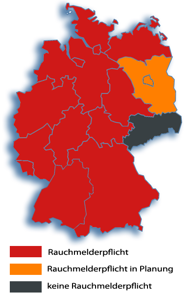 Heute haben bereits 13 Bundesländer (Baden-Württemberg, Bayern, Bremen, Hamburg, Hessen, Mecklenburg-Vorpommern, Niedersachsen, Nordrhein-Westfalen, Rheinland-Pfalz, Saarland, Sachsen-Anhalt, Schleswig-Holstein und Thüringen) eine Rauchmelderpflicht für private Wohnräume.