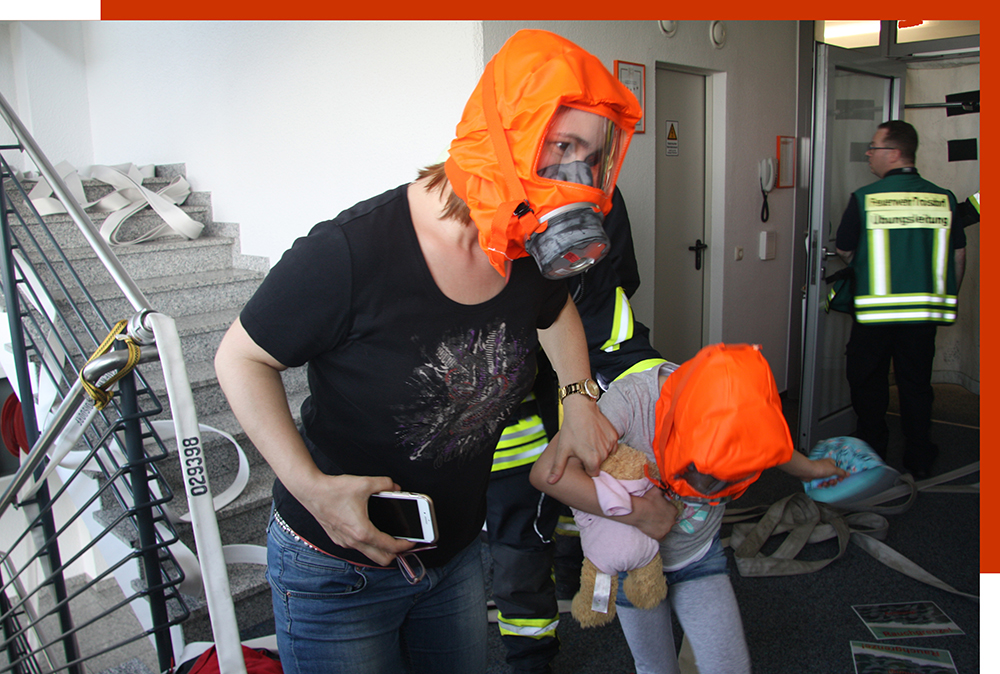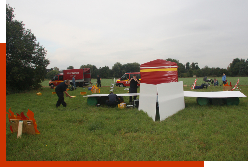 Die Alarmierungen am 21.04. sowie das Szenario ließen schreckliches erahnen - Gott sei Dank handelte es sich nur um eine unangekündigte, unter strenger Geheimhaltung in Federführung des Sieglarer Löschgruppenführers vorbereitete, Alarm- und Vollübung der gesamten Feuerwehr Troisdorf. Mit großzügiger Unterstützung der Firma TNT Express GmbH und einiger Familienangehörigen der Sieglarer Kameraden, konnte im Verwaltungsgebäude ein Feuer im 5. OG und das entsprechende Vorgehen in Hochhäusern von der gesamten Wehr geübt werden. |