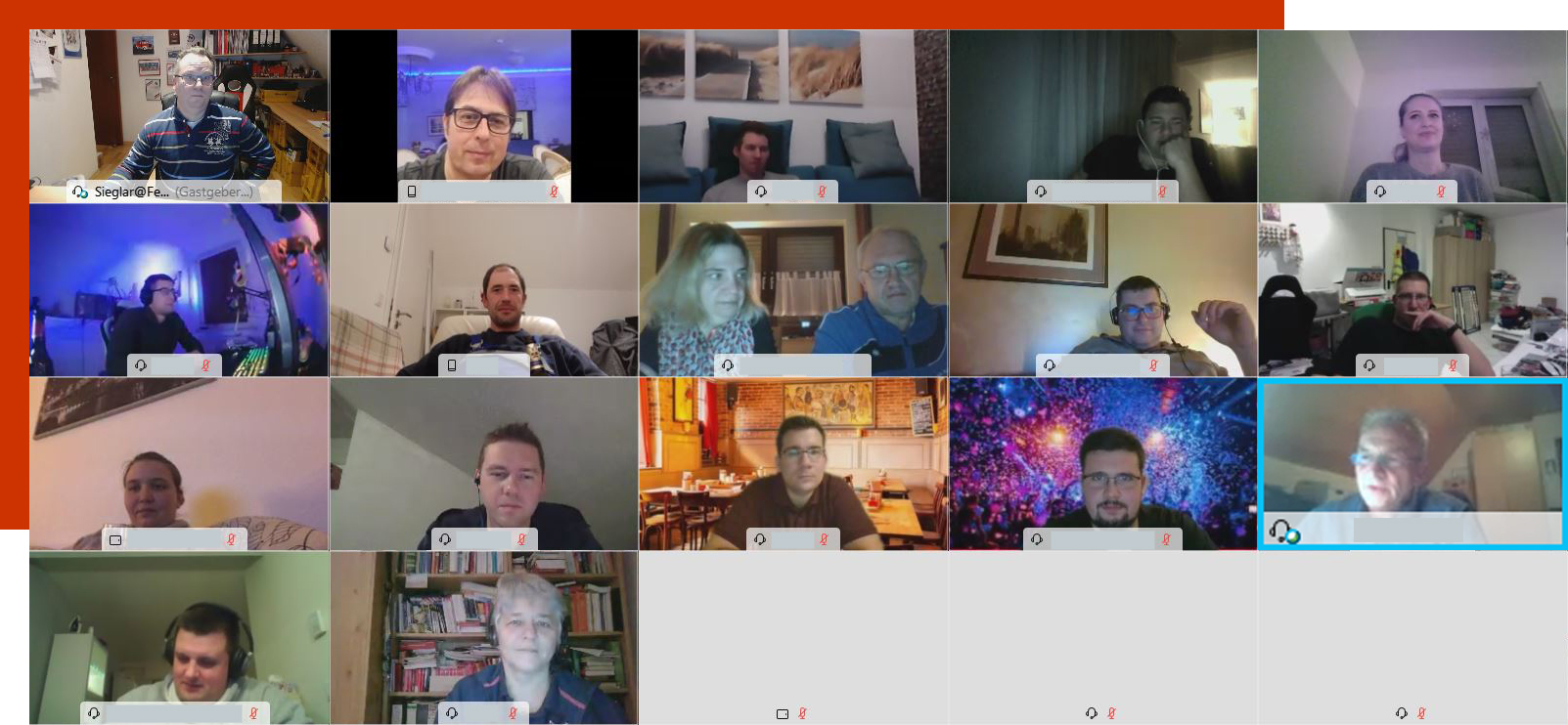 Daher werden wir kreativ und digital. Am 11.04. führen wir unsere erste Online-Übung in der Geschichte der Löschgruppe durch. Die teilnehmenden Kameradinnen und Kameraden sind hocherfreut sich im Lockdown zumindest auf diese Weise per Video zu sehen und miteinander reden zu können. |