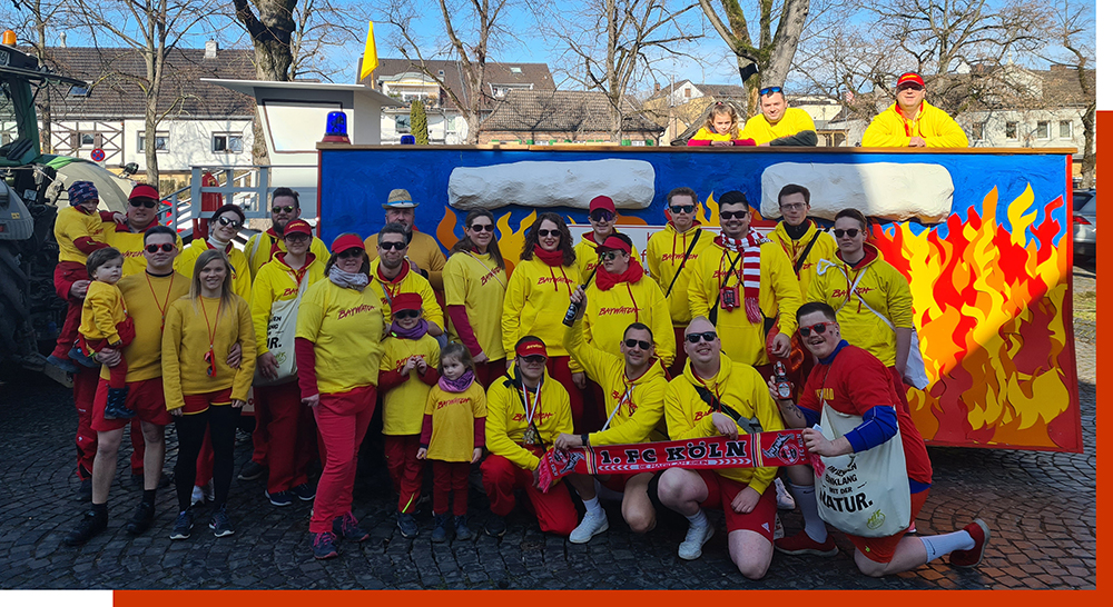 Den Mitgliedern der Löschgruppe ist das Thema "Rettungsgasse" derart wichtig, dass sie am 04.03.2019 mit insgesamt 35 Teilnehmern unter dem Motto "Bei Stau-Rettungsgasse bilden!" am Sieglarer Rosenmontagszug teilnehmen. Zwischendurch gibt es mitten im Zug auch mehrere Choreografien, wobei die "Fahrzeuge" mitten im Rosenmontagszug eine Rettungsgasse bilden. |