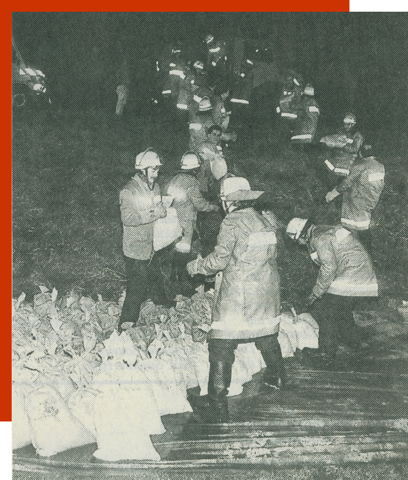 Nach ergiebigem Dauerregen am 14.07. ist die Feuerwehr in Troisdorf im Dauereinsatz um vollgelaufene Keller leer zu pumpen. Aber es kommt noch schlimmer. In den Abendstunden werden die Sieglarer Einsatzkräfte, neben etlichen anderen verfügbaren Einheiten aus dem gesamten Kreisgebiet, mit dem Löschfahrzeug von der Leitstelle des Rhein-Sieg-Kreises nach Rheinbach abgerufen. Dort sind in kurzer Zeit die Bäche und Flüsse so vollgelaufen, dass es heftige Überflutungen gibt. Zu Anfang ist die Lage unübersichtlich und katastrophal. In den nächsten Tagen und Nächten fahren die Kameradinnen und Kameraden mehrfach nach Rheinbach und Swisttal um bei der Bewältigung dieser Katastrophe zu unterstützen. In den darauffolgenden Wochen unterstützen einige Sieglarer Einsatzkräfte und Kräfte der gesamten Feuerwehr Troisdorf mehrfach die Bergungs- und Aufräumarbeiten an der Ahr.