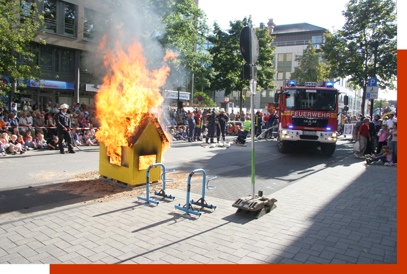 Beim Stadtfeuerwehrtag während des Familienfestes in der Troisdorfer Fußgängerzone am 12.05. können Interessierte am Stand der Löschgruppe in die Rolle eines Feuerwehrmanns schlüpfen und Erinnerungsfotos machen lassen. |