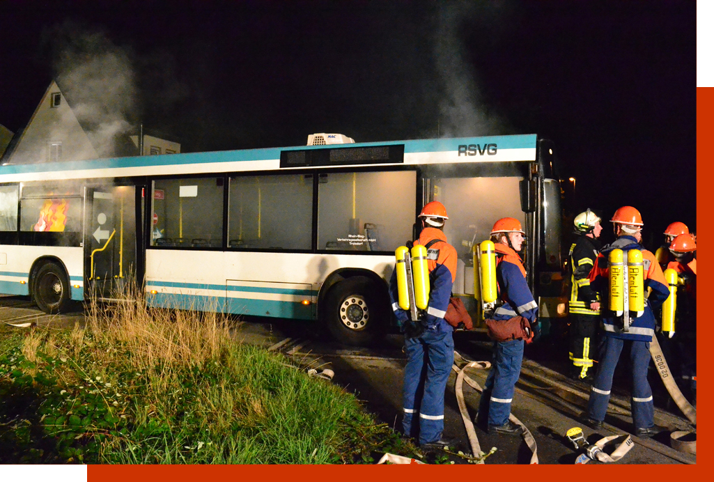 In der Bus- und Lockhalle auf dem Gelände der RSVG bricht am 28.09. ein Großbrand aus. Die parkenden Busse in der großen Halle stehen in Brand. Mehrere Mitarbeiter werden vermisst. Was sich zunächst schrecklich anhört, ist in der Realität das geplante Übungsszenario für die heutige Großübung der Jugendfeuerwehr Troisdorf, die durch die Kameradinnen und Kameraden der Löschgruppe vorbereitet und begleitet wird. |