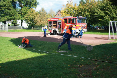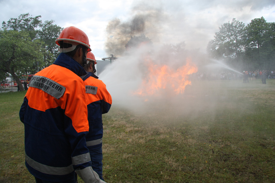 Auf einem Feld brennt ein Anhänger eines Bauern. Bereits auf der Anfahrt ist eine starke schwarze Rauchentwicklung sichtbar. Aufgrund der schwierigen Löschwasserversorgung wird schnell klar, dass eine Wasserversorgung über eine lange Wegstrecke erfor-derlich ist um die Brandausbreitung zu verhindern und den Brand erfolgreich bekämpfen zu können.