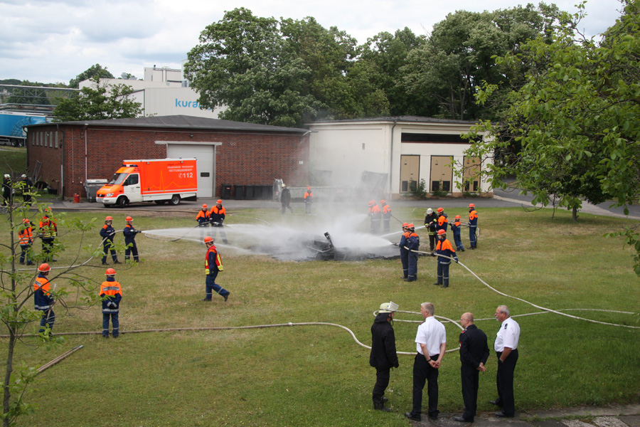 Ein Spaziergänger sieht Rauch aus einer Industriehalle aufsteigen und alarmiert über den Notruf 112 die Feuerwehr. Die ersten an der Halle eintreffenden Feuerwehreinheiten sehen sich einem ausgedehnten Gebäudebrand gegenüber. Sofort wird klar, dass weitere Einheiten aus dem gesamten Stadtgebiet erforderlich sind, um den Brand erfolgreich bekämpfen und noch nicht betroffene Gebäude schützen zu können.