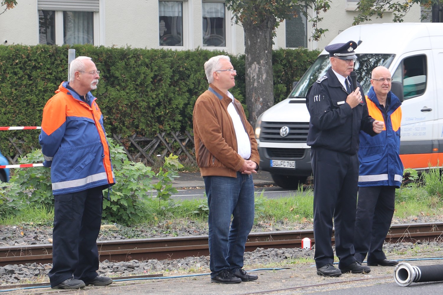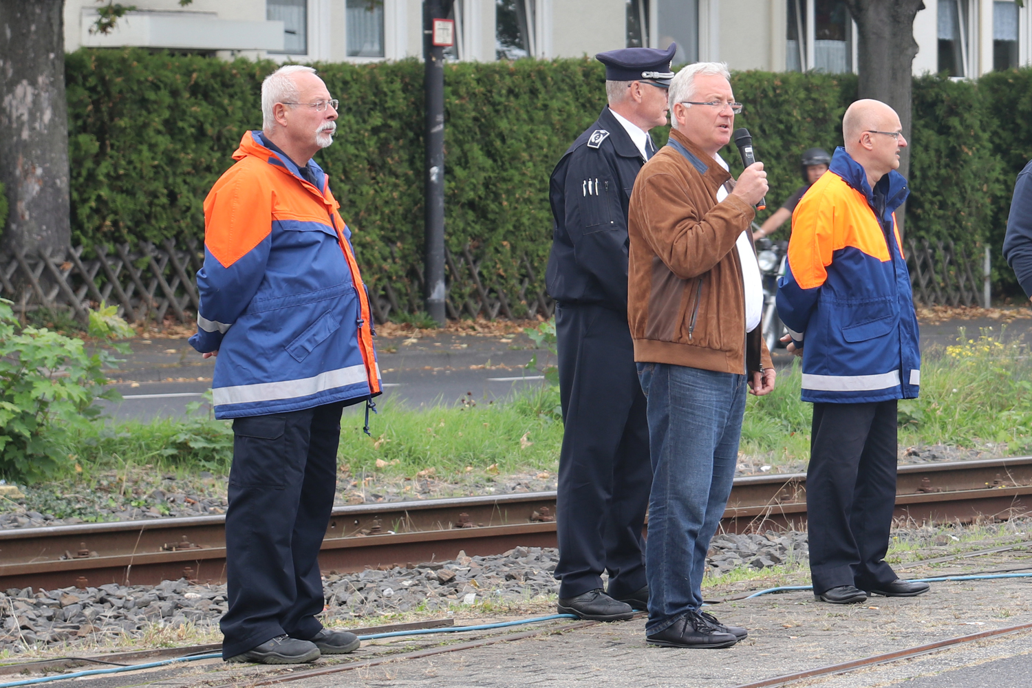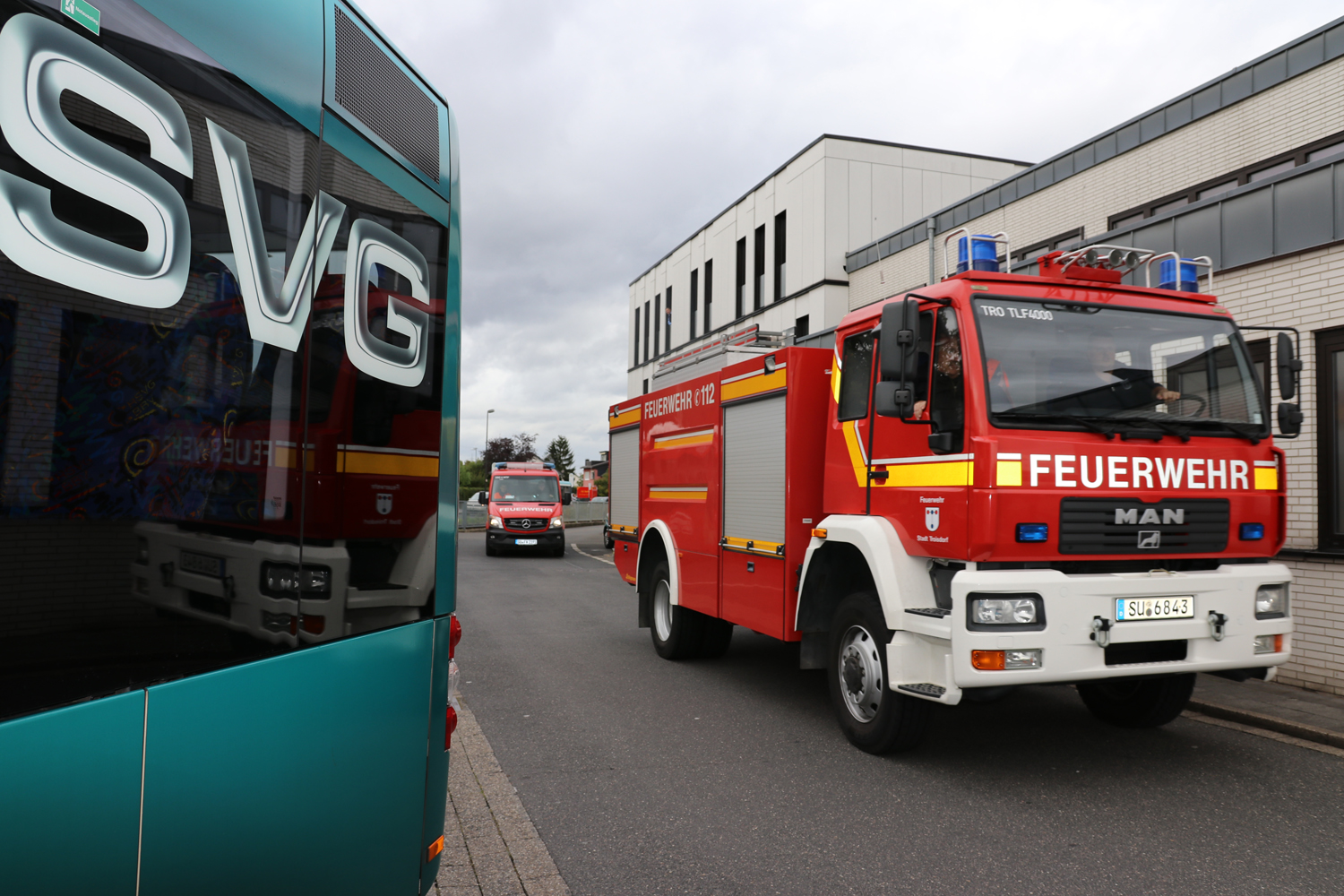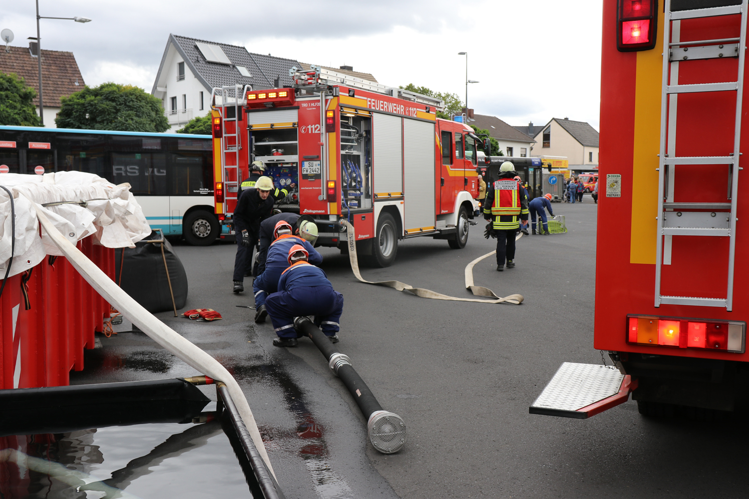 Im Anschluss an die offizielle Begrüßung von Stadtjugendfeuerwehrwart André Dekleermaeker, Bürgermeister Klaus-Werner Jablonski sowie Stadtbrandinspektor Stefan Gandelau, fuhren die Gruppen mit ihren Fahrzeugen die Bereitstellungsräume am Netto-Parkplatz im Kirchtal, am Sieglarer Schulzentrum sowie auf der Feuer- und Rettungswache an und wur-den von dort per Funk zu dem Einsatzszenario: „Brennt Bus und Lock Depot bei der RSVG in Sieglar, mehrere Menschen werden vermisst" „alarmiert“.