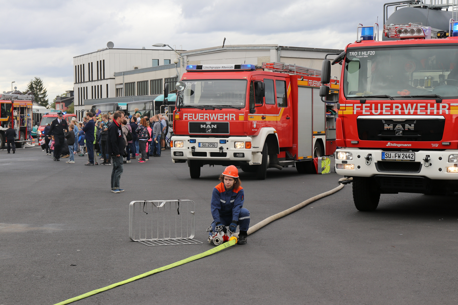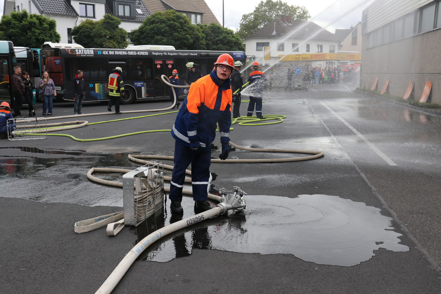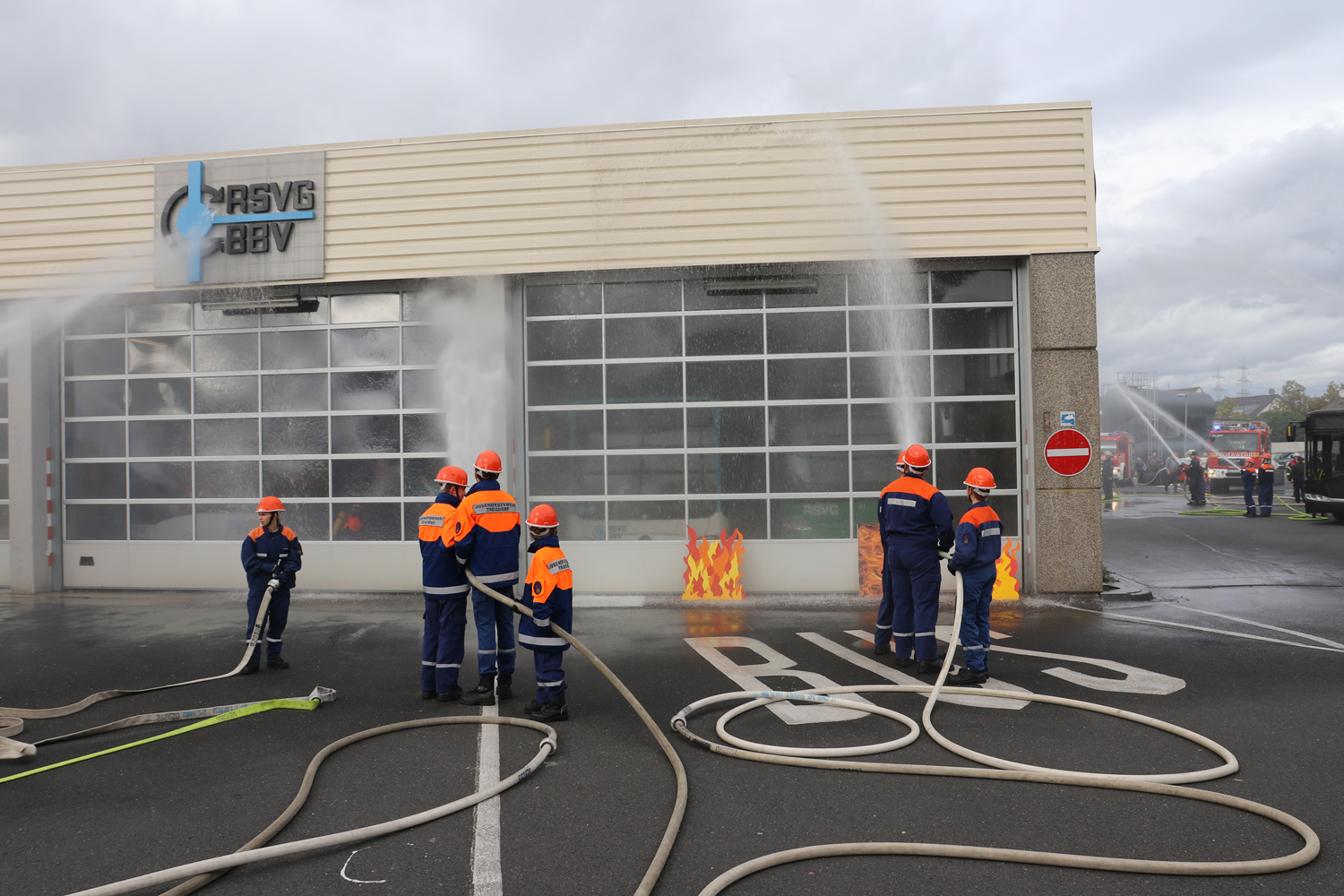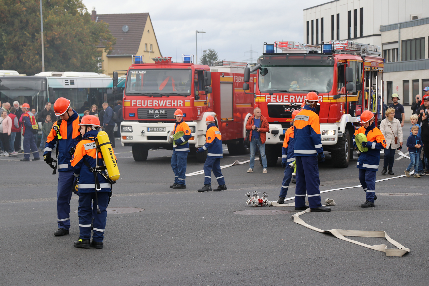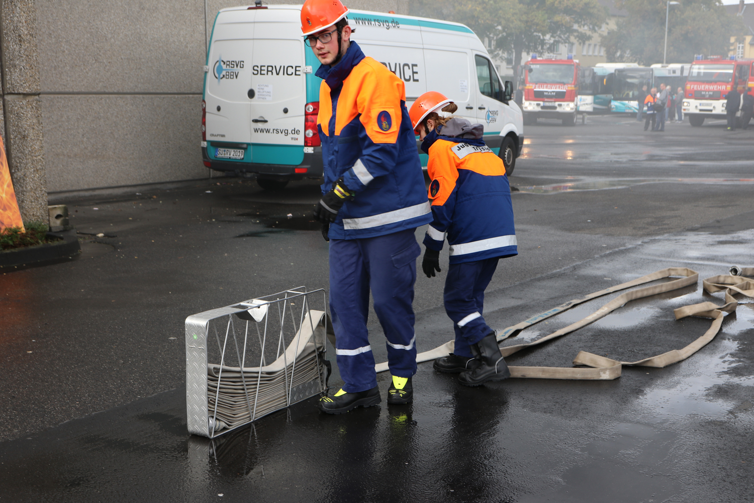 Diese Großübung und zugleich der Höhepunkt für jedes Mitglied der Jugendfeuerwehr fand am Samstag, dem 28.09.2019 im Stadtteil Sieglar im Rahmen eines Tages der offenen Tür auf dem Betriebshof der Rhein-Sieg-Verkehrsgesellschaft (RSVG) statt.