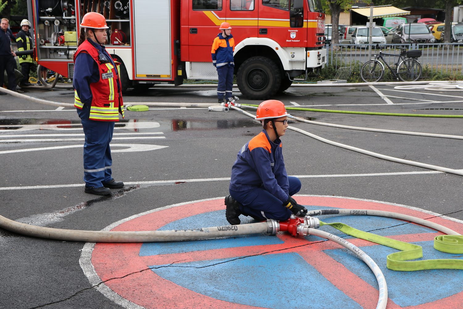 Die sechs Troisdorfer Jugendfeuerwehr-Gruppen mit den insgesamt rund 100 Kindern und Jugendlichen konnten anhand des realistischen Übungsszenarios ihr Können unter Beweis stellen.