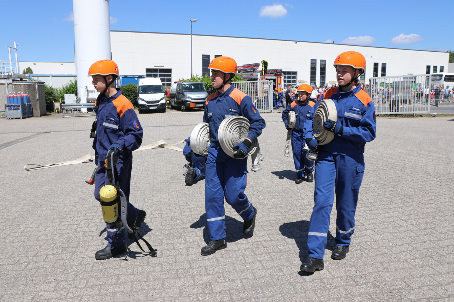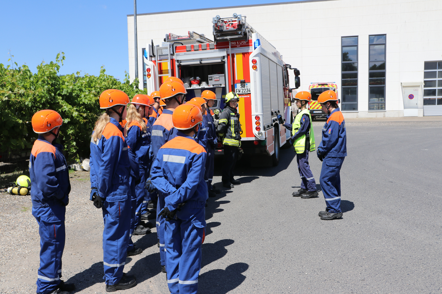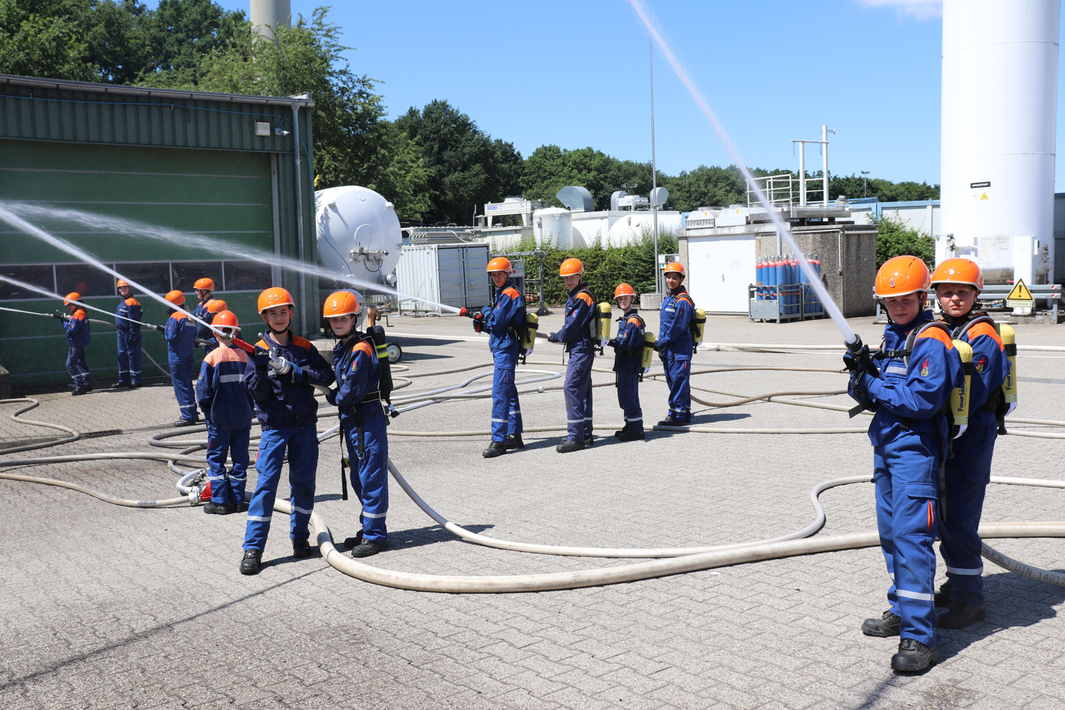 Die sechs Troisdorfer Jugendfeuerwehr-Gruppen Gruppen mit insgesamt rund 100 Kindern und Jugendlichen trafen sich an der Firma GasCom Equipment GmbH, Camp-Spich-Straße 9-11 in Spich.