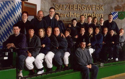 Vor der Einfahrt ins Salzbergwerk Berchtesgaden am 30. Mai 2002